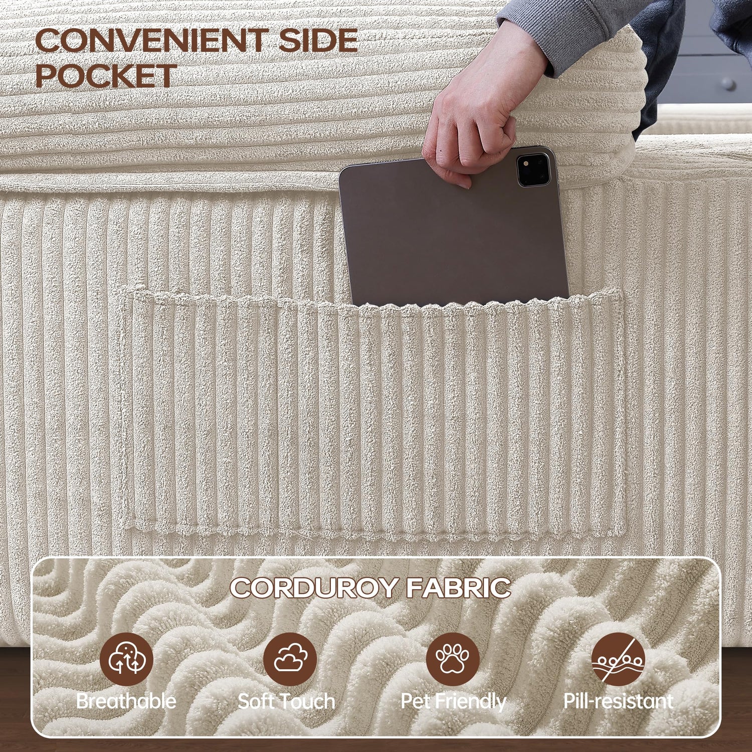 - 【Durable Corduroy Fabric】Our upgraded corduroy fabric offers better breathability and stain resistance, making this plush sofa easy to care for and clean. Best of all, you won’t have to worry about your furry kids scratching the surface—now you could both relax on the sofa and enjoy those cozy moments together.