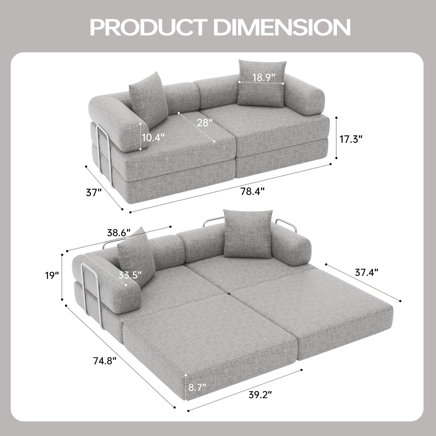 - 【Creative Convertible Sofa】Our folding sofa breaks the single-function design of traditional sofas and offers great flexibility. The backrest and base can be freely combined and changed. The sofa can be transformed into a futon, two single seats, or a full-size mattress to meet your needs - whether you are working, reading, relaxing, or receiving guests.