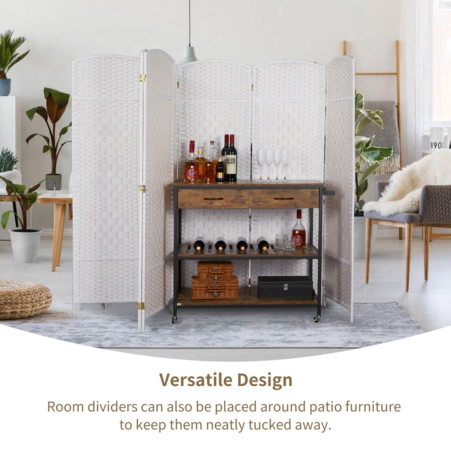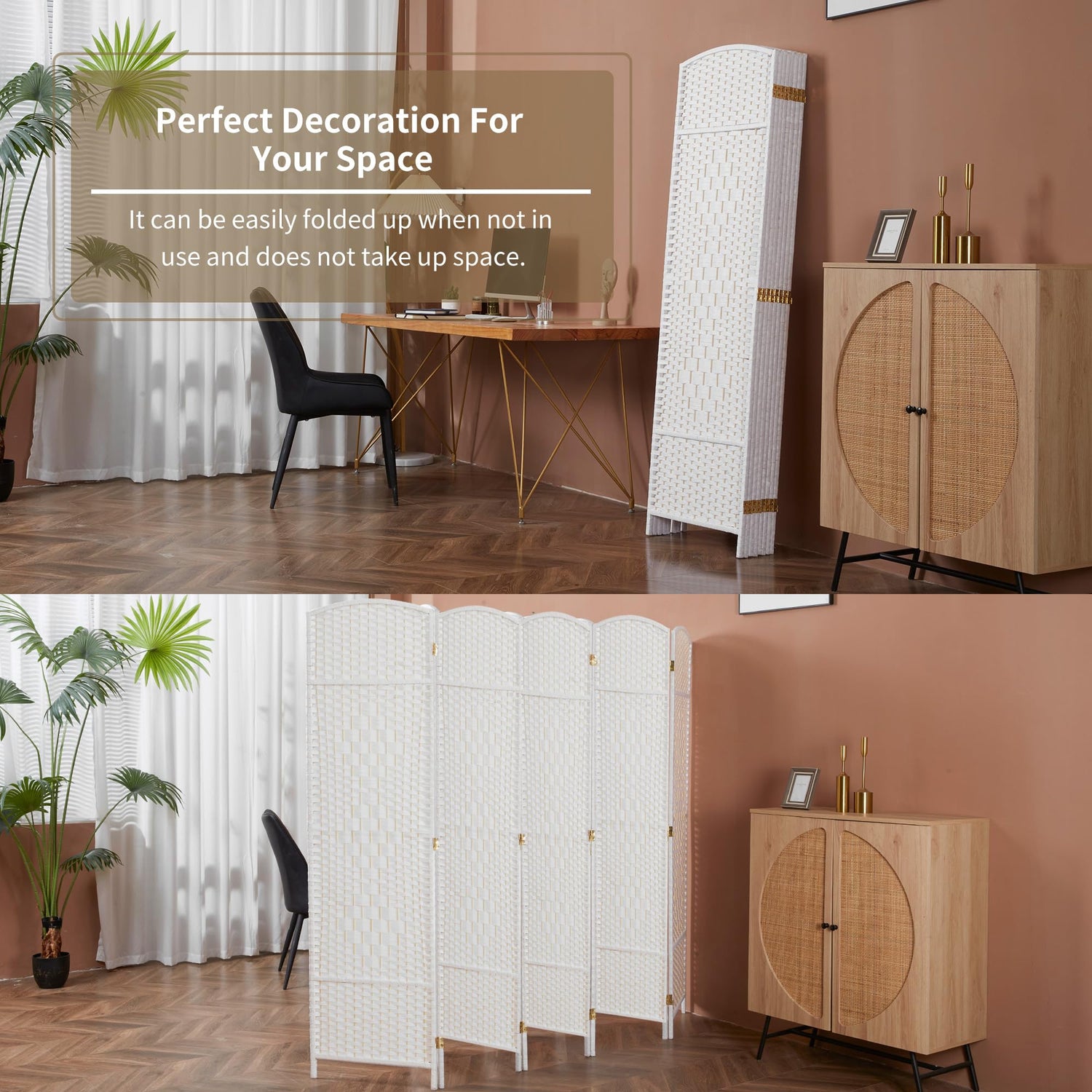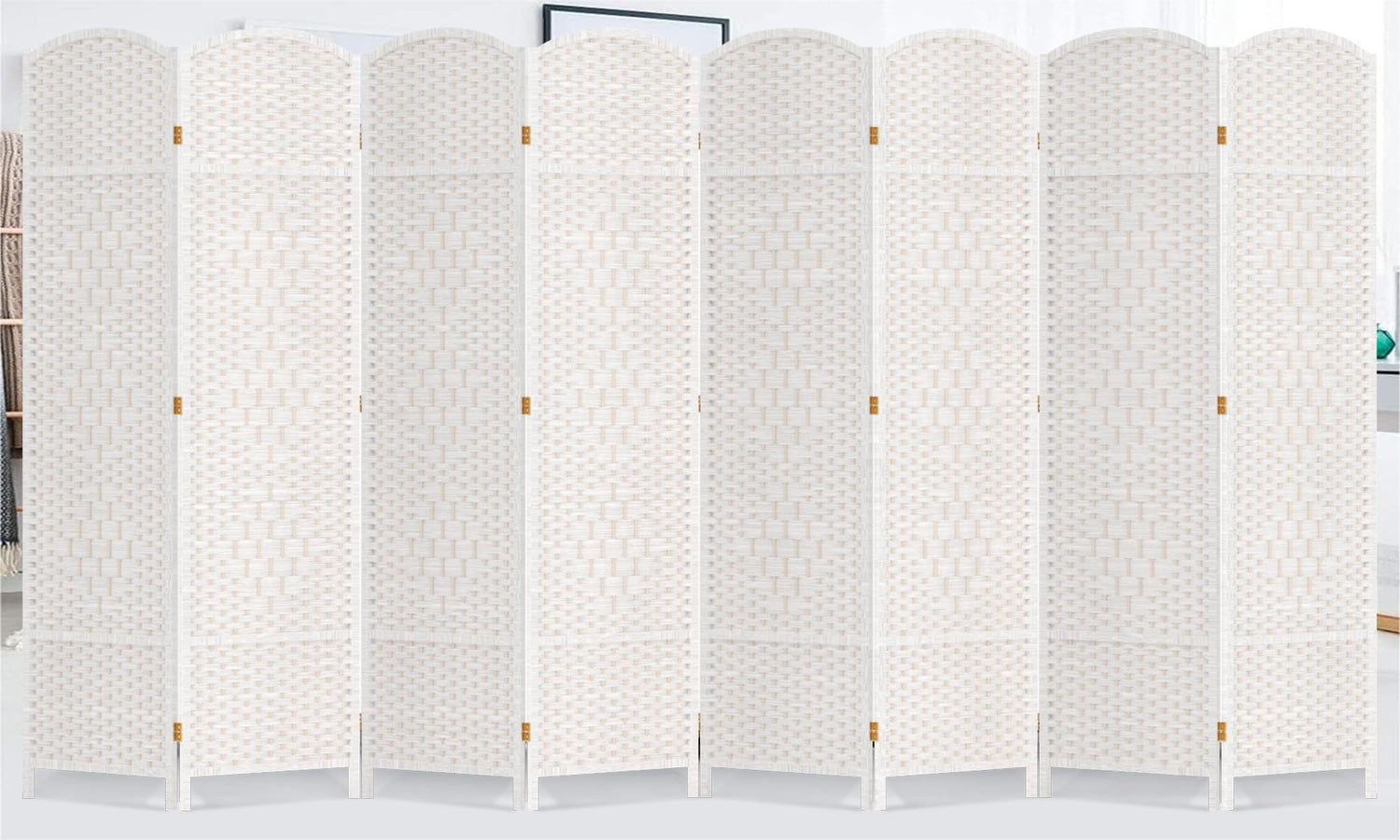 Duraspace 8 Panels Room Divider 6 FT Tall Weave Fiber Privacy Screen Freestanding Double Hinged Folding Screen Extra Wide Room Dividers for Patio Privacy (Off White)