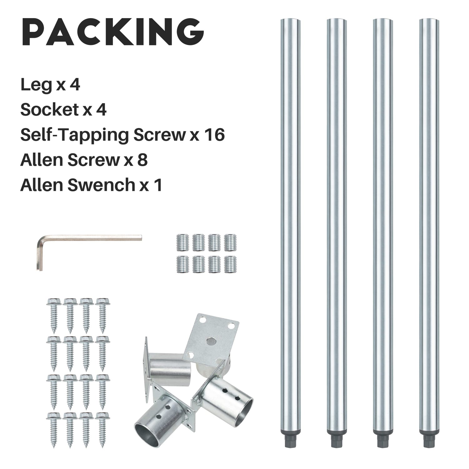 · Packing: Leg x 4, Socket x 4, Self-tapping Screw Set x 1, Allen Screw Set x 1