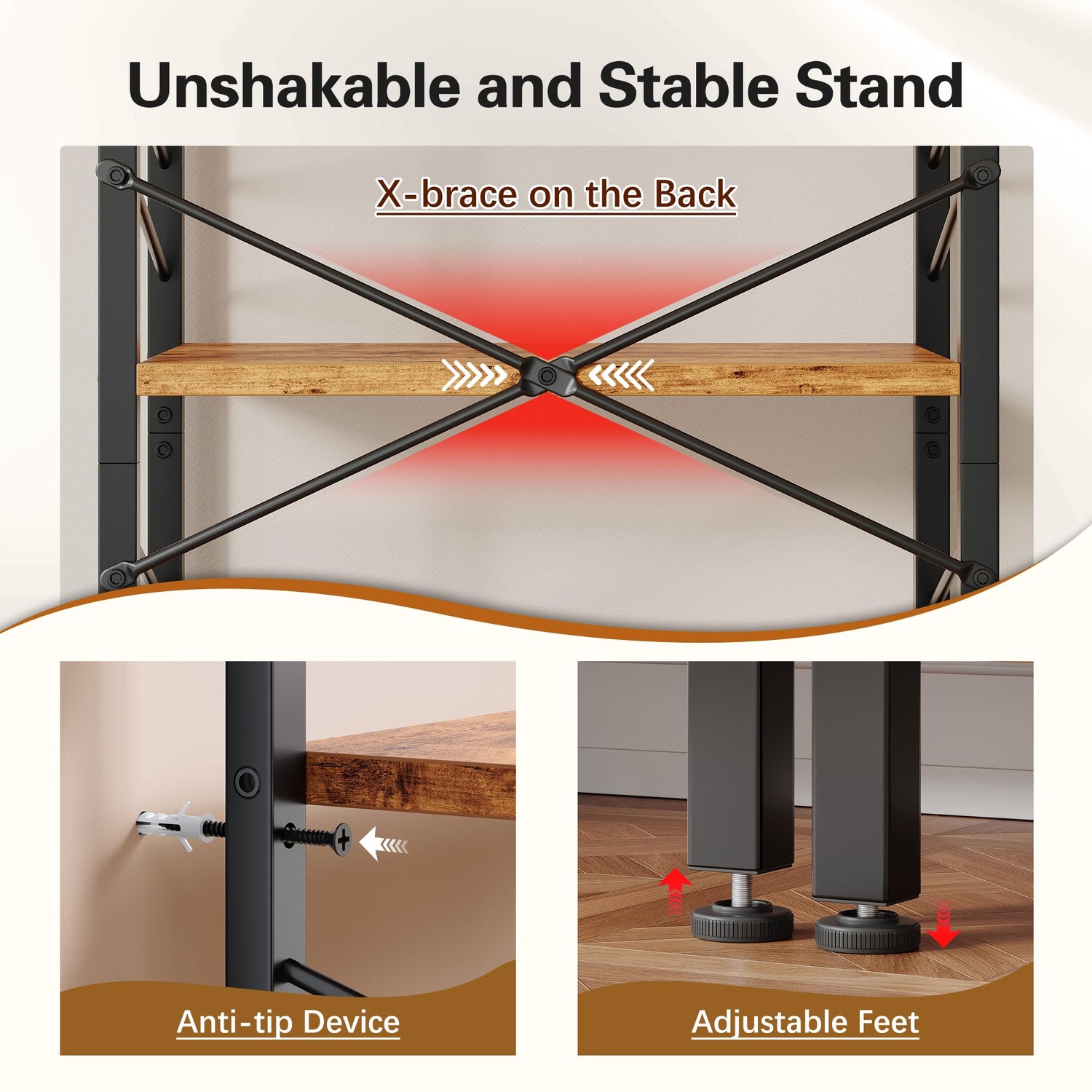 - 【Sturdy & Easy Clean Construction】: The rustic bookcases are coated with a premium waterproof and anti-scratch finish. This robust surface resists daily wear, stains, and moisture, ensuring long-lasting beauty. Maintenance is effortless—just a quick wipe with a damp cloth keeps it looking new. This 4 shelf bookcase with integrated anti-tip kit firmly anchors the entire structure, ensuring a secure and no wobble storage solution for your home.