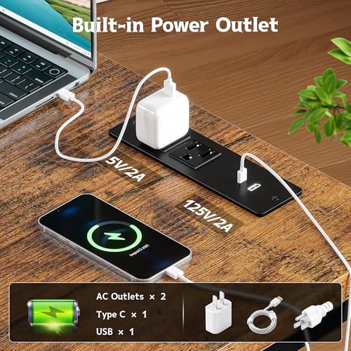 - 【All-in-One Power Desk】 Equipped with 2 power sockets + 1 Type-C port + 1 USB port, charging up to 4 devices (phones, tablets, laptops, etc.) simultaneously.