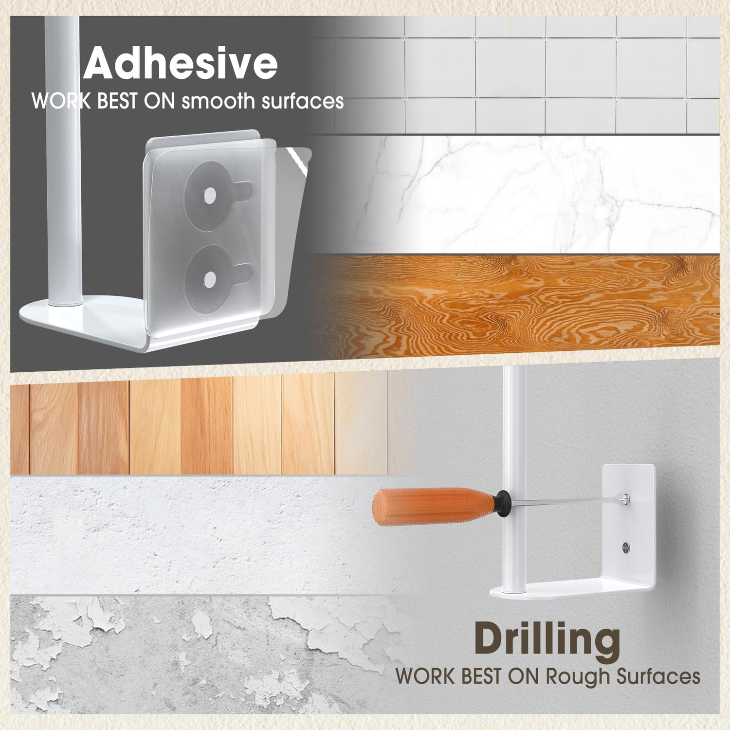 - 【Three Installation Methods】: 1. Self-adhesive installation, suitable for smooth wall surfaces such as marble tiles and glass. 2. Drilling installation, suitable for rough and uneven surfaces such as painted drywall and wallpaper. 3. Install with screws on the wooden board.