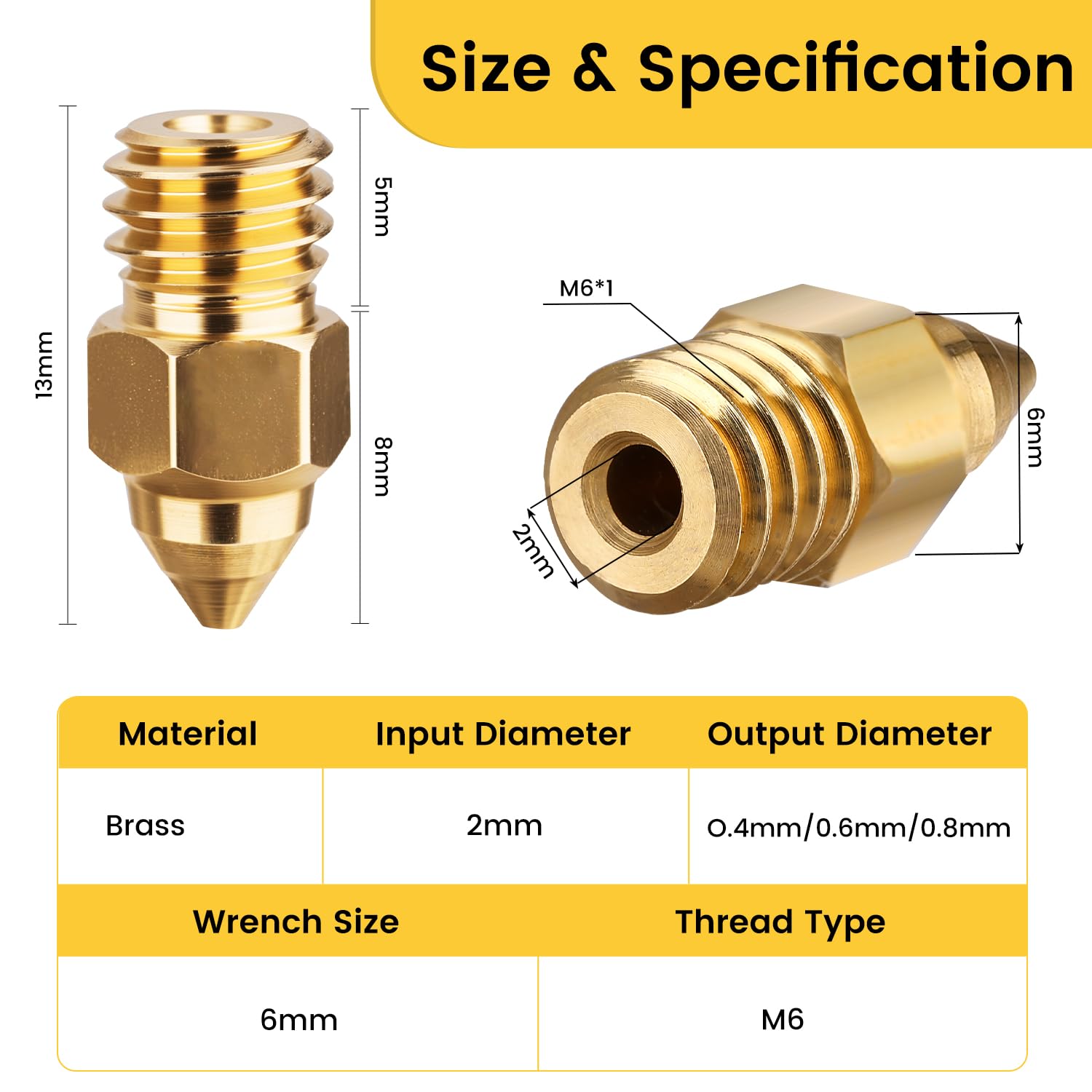 - Optimal Thermal Conductivity: Crafted from high-quality brass, DUROZZLE’s brass nozzle ensures consistent heating and reduced clogging with excellent thermal conductivity, resulting in smoother printing performance;
