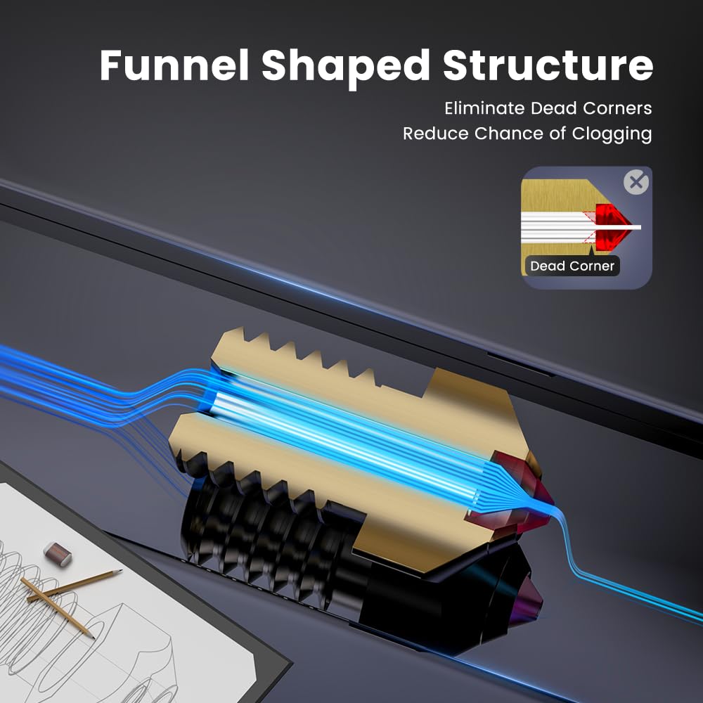 - Genuine Ruby: DUROZZLE takes genuine ruby as the tip material for all its ruby series nozzles. It offers excellent durability and resistance to highly-abrasive filaments like carbon fiber, glass-infused materials, or metal-filled filaments;