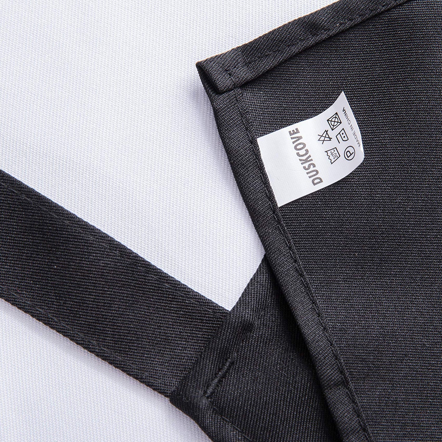 - DURABLE & LIGHTWEIGHT: Aprons are made of 97% polyester and 3% cotton, and are Long-lasting and machine washable. They do not soak up stains unlike cotton aprons, and launder much easier.