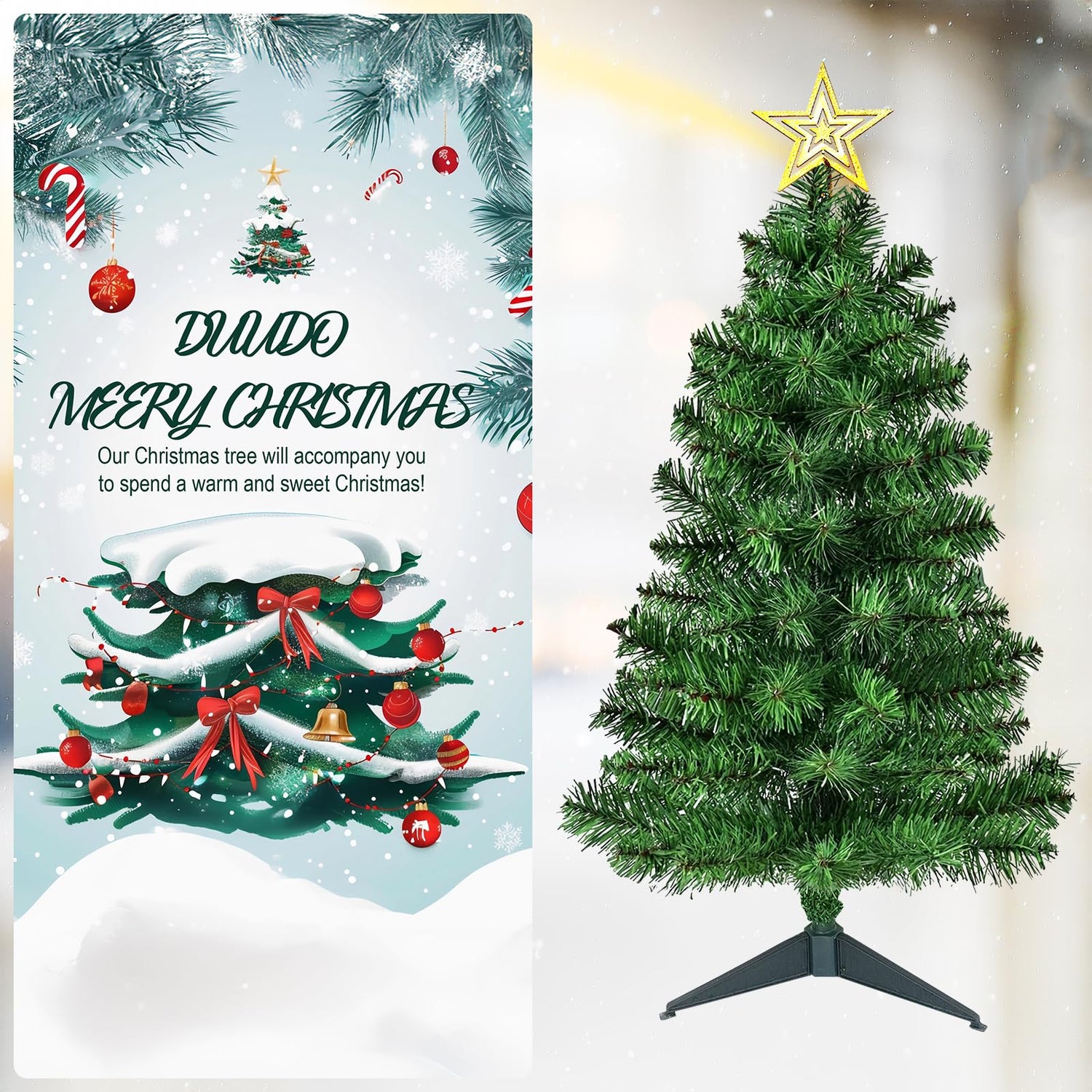DUUDO Tabletop Premium Artificial 3Ft Small Mini Christmas Tree for Home, Office, Indoor and Outdoor Decor,Holiday Decoration,Easy Assembly Metal Hinges & Foldable Base.Green Tree