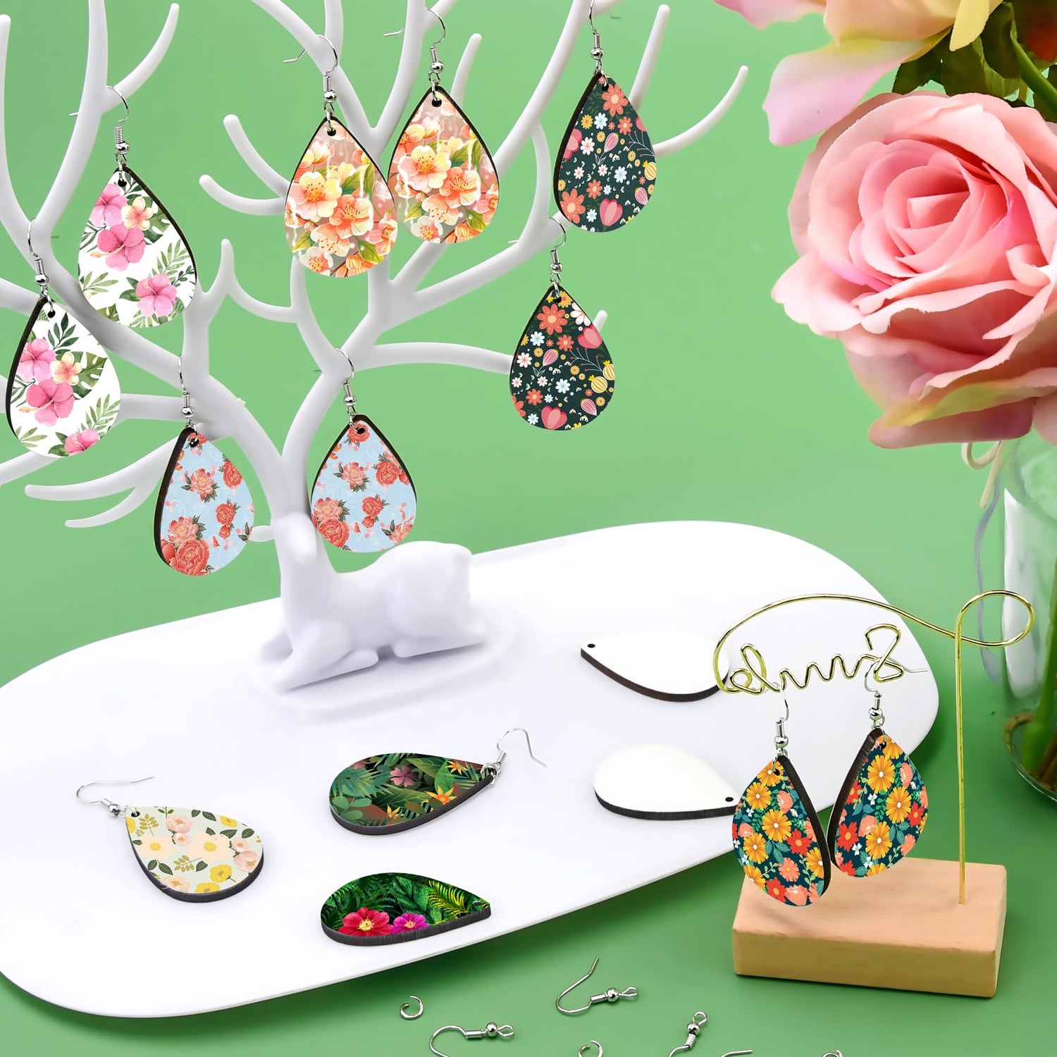 Duufin 120 Pcs Sublimation Earring Blanks with Earring Hooks and Jump Rings Sublimation Blanks Products Unfinished MDF Teardrop Earrings Blanks for Sublimation Women Halloween Christmas DIY
