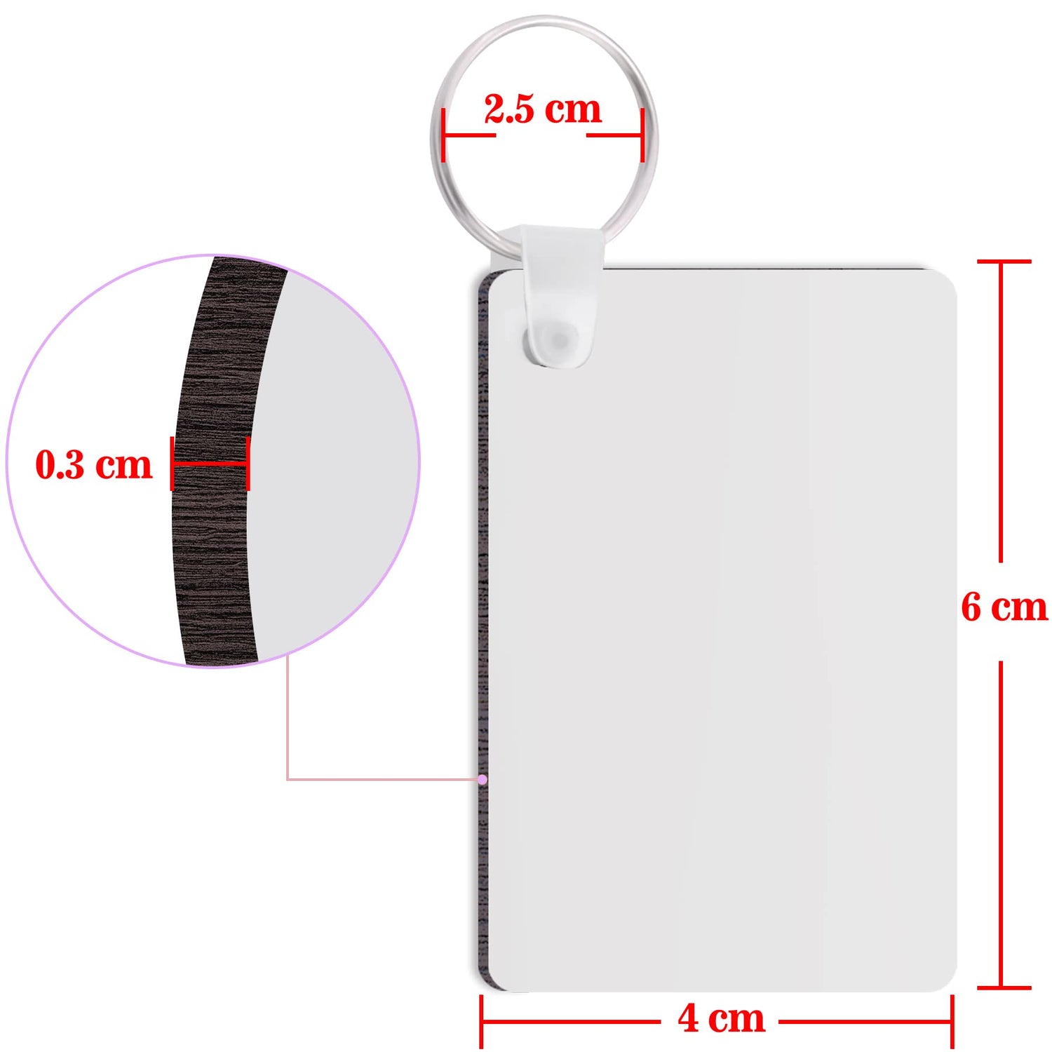 - Quality Material: Duufin sublimation blanks are made of MDF material, smooth and comfortable handfeel, lightweight and high hardness, which are ideal decorations for keys, bags, phone and so on; Each heat transfer keychain blanks measures 6 x 4cm (length x width), thickness about 3mm/ 0.12 inch
