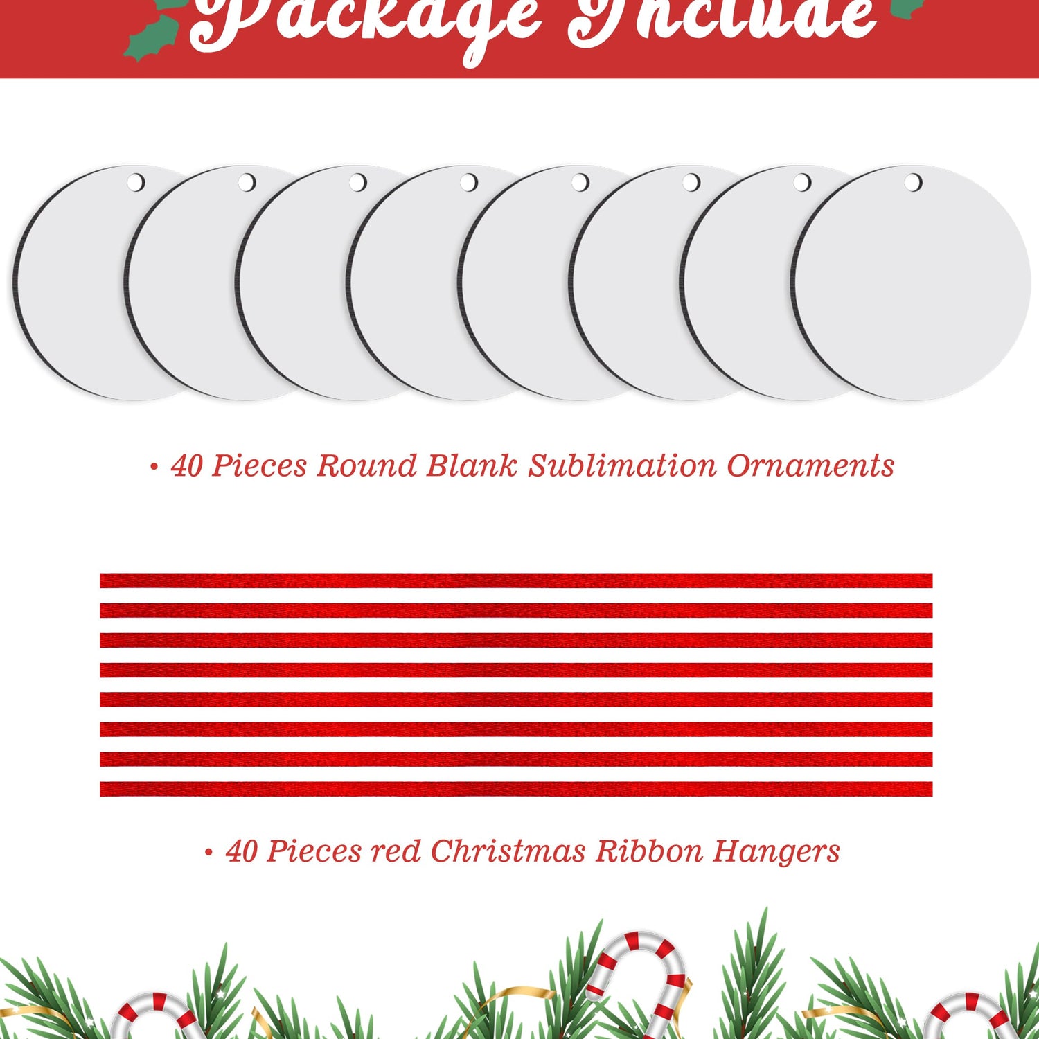 - Package Include: you will receive 40 pieces of sublimation ornaments blanks and 40 pieces Christmas ribbon hangers, we offer enough quantity for you to share these sublimation Christmas ornament blanks with your family and friends, just enjoy the fun of making handmade crafts together, Merry Christmas!
