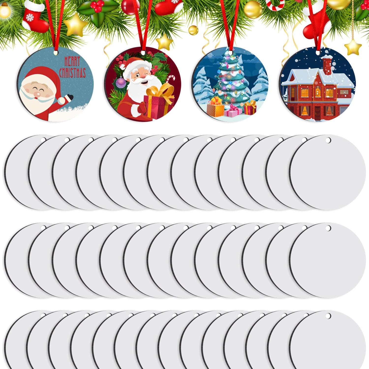 Duufin 40 Pieces Sublimation Ornament Blanks 3" Sublimation Christmas Ornament Blanks Round Blank Sublimation Ornaments for Christmas Tree Décor, DIY Handmade Crafts(3 inches)