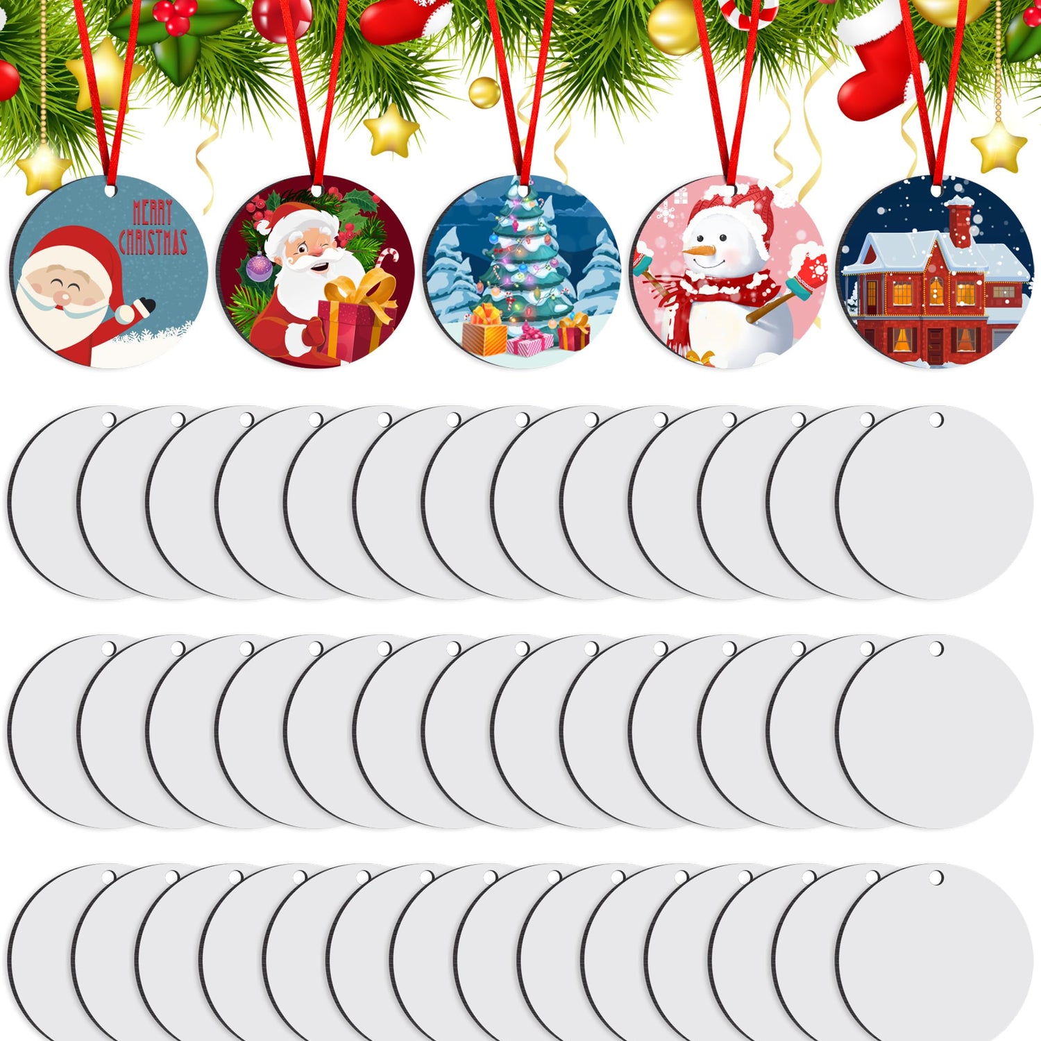 Duufin 50 Pieces Sublimation Ornament Blanks 2.75" Round Blank Sublimation Ornaments Sublimation Christmas Ornament Blanks for Christmas Tree Décor, Heat Transfer Print DIY Craft(2.75 inches)