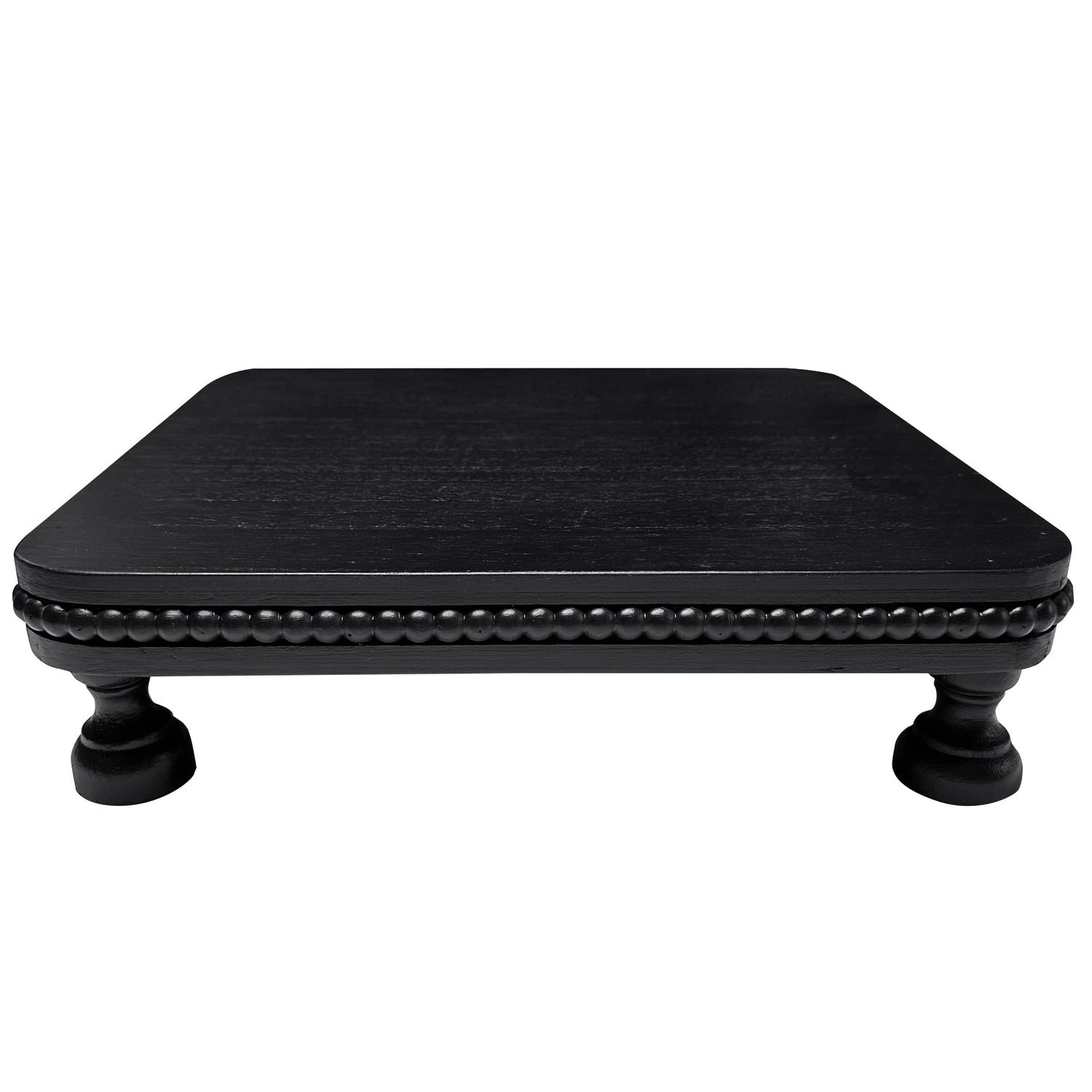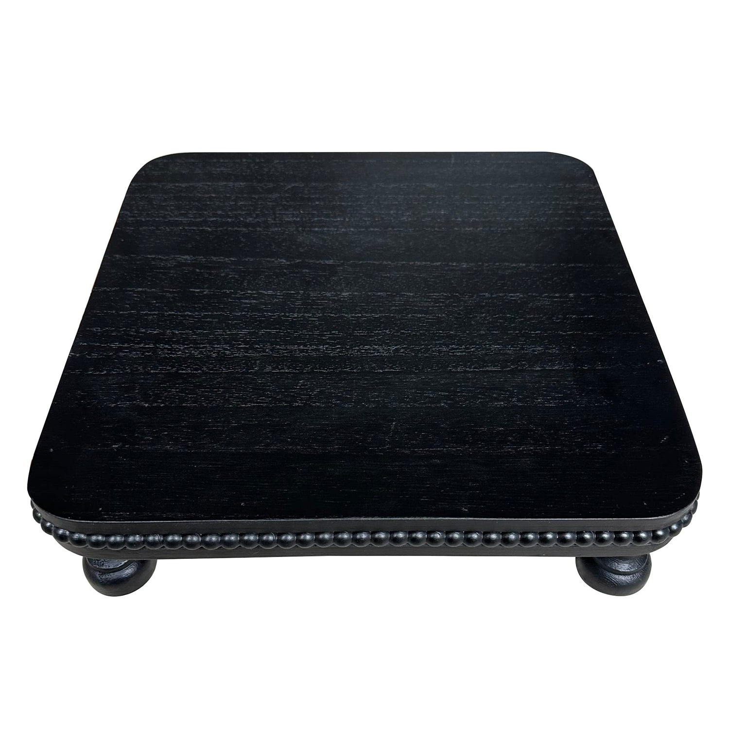 dwellington Farmhouse Display Wood Riser, 12" Decorative Black Beaded Pedestal Stand, Square Tiered Tray Decor for Kitcher Decor, Countertop