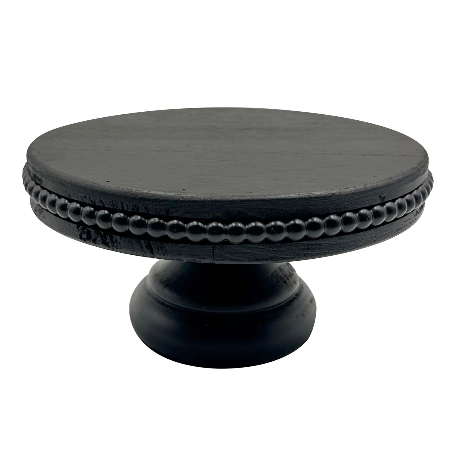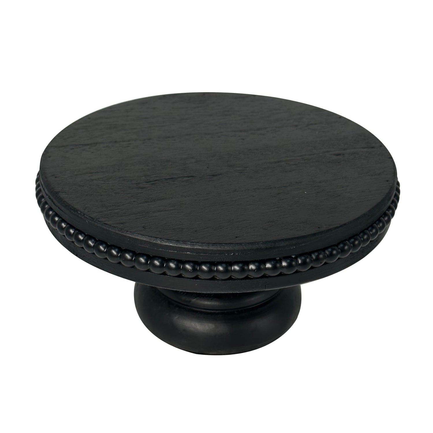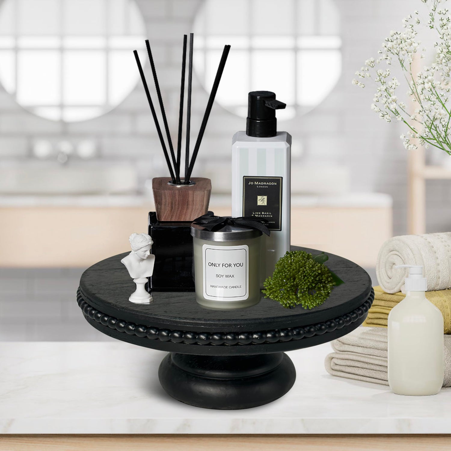 dwellington White Wash Display Wood Riser, 8.25¡± Shabby Chic Pedestal Tray Decor with Beads, Farmhouse Display Stands for Coffee Bar, Bathroom, Kitchen Island (Black)