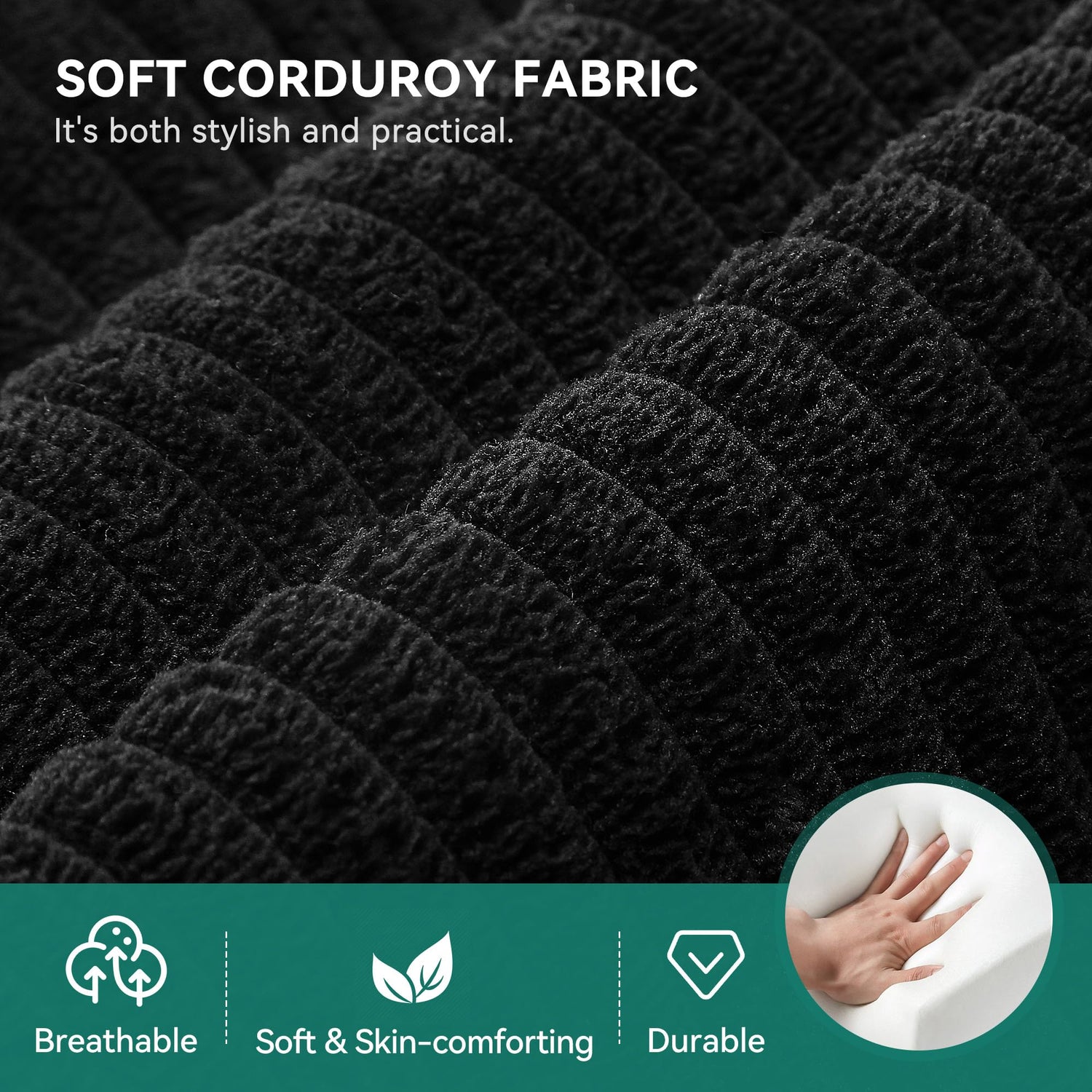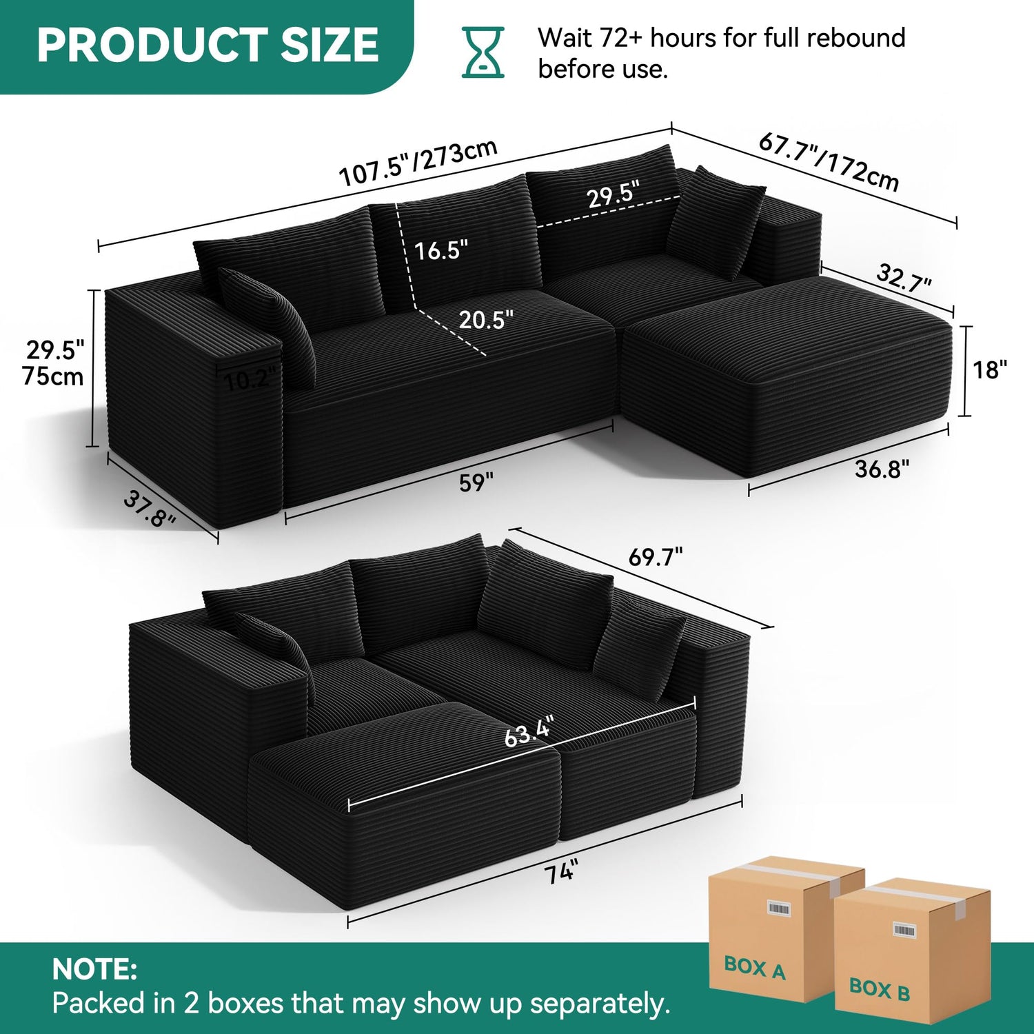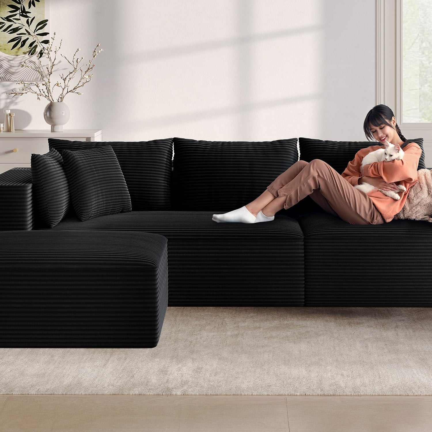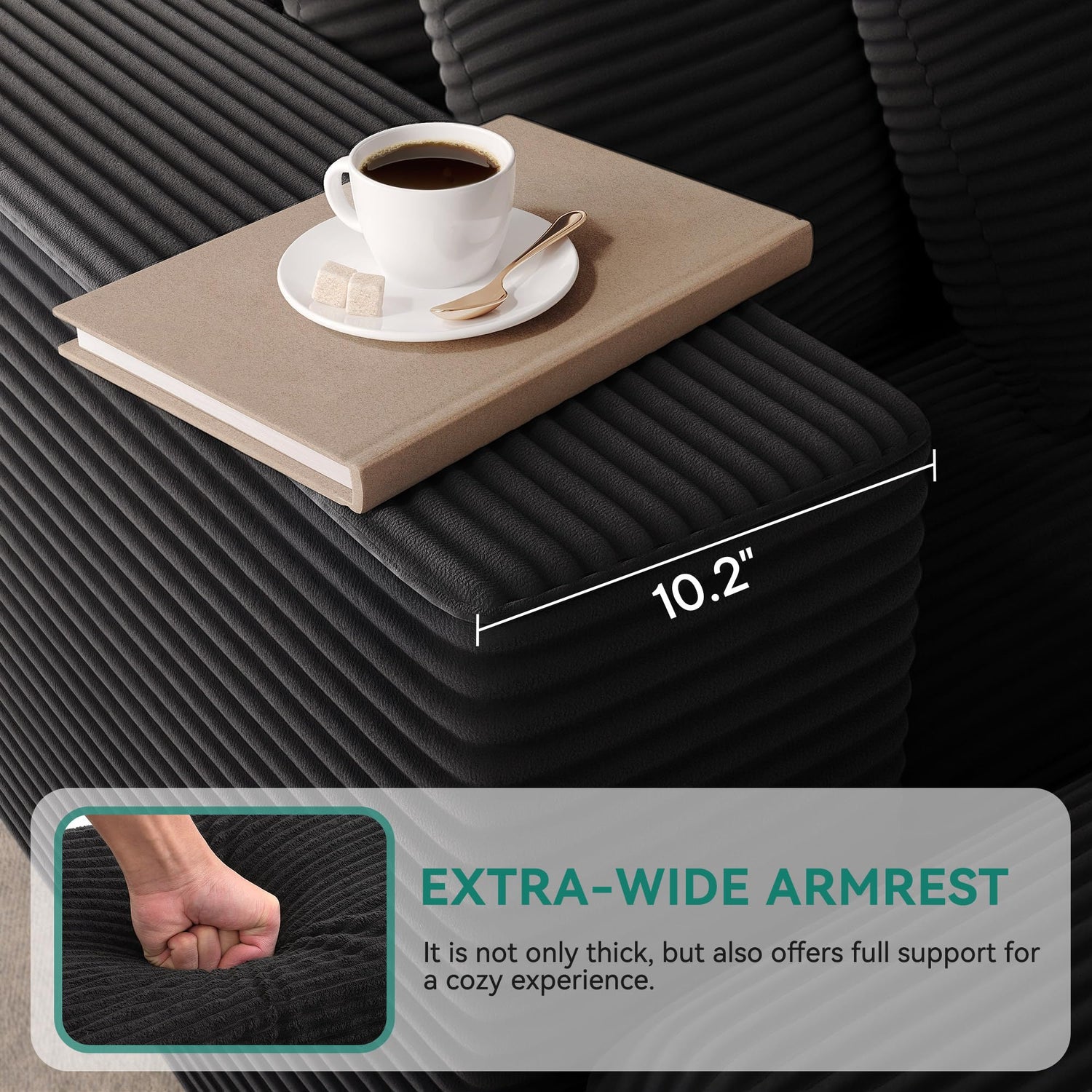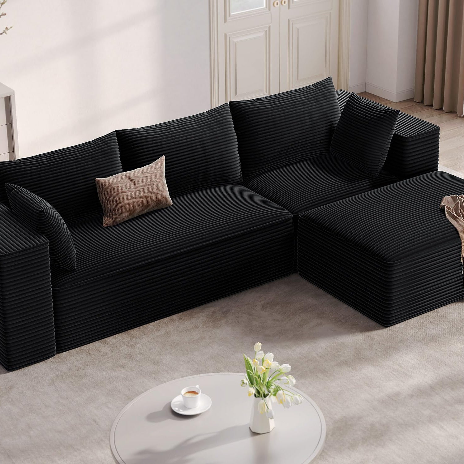 - Modern Elegance & Effortless Setup: Wrapped in timeless black corduroy, this sectional adds a chic, modern edge to any living room. Easy-to-assemble design means you can set it up in minutes and instantly upgrade your home with comfort and style.