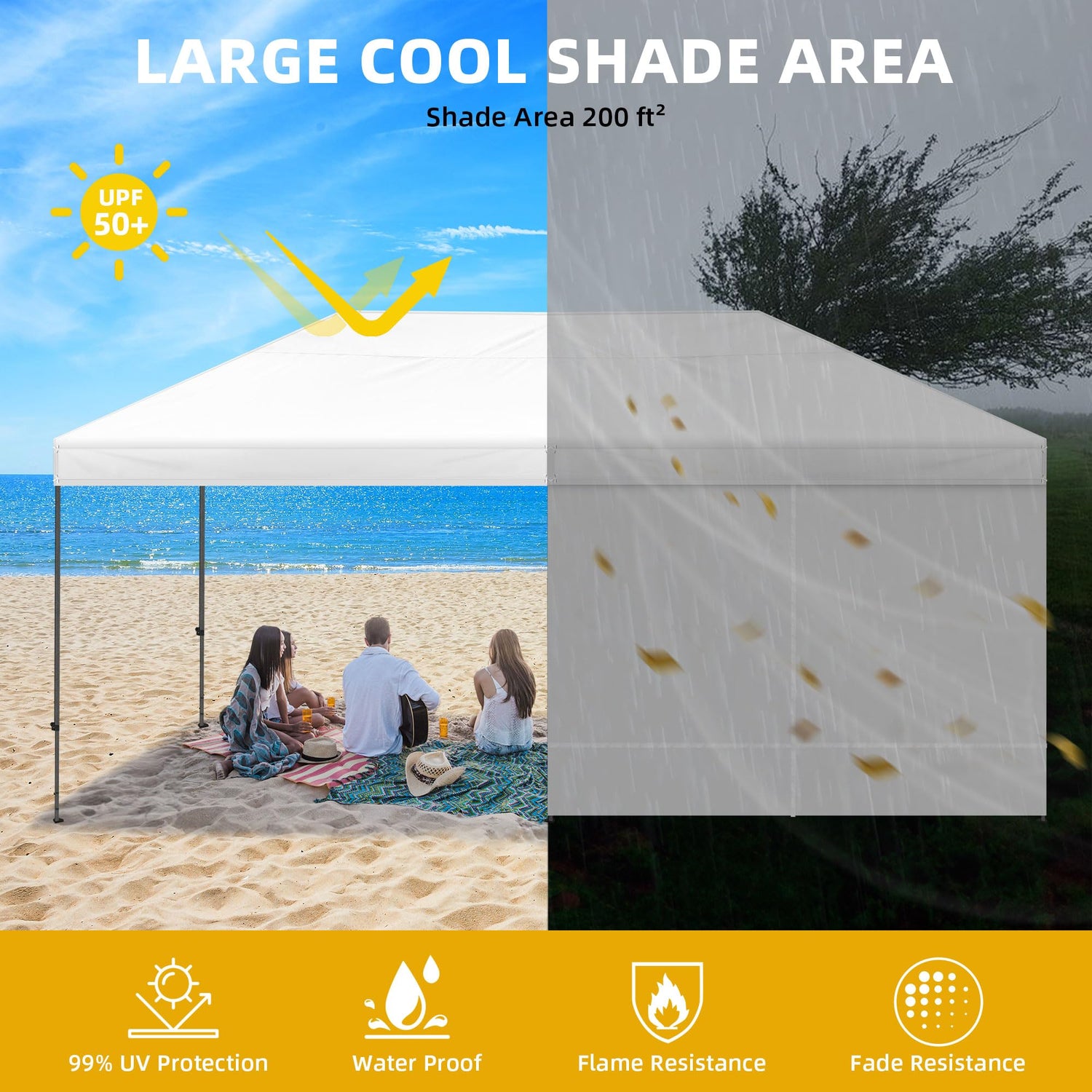 - 3 Adjustable Heights Delight:From lazy lounging to lively fiestas, our canopy tent with 6 side walls morphs to your mood with three adjustable heights (9.9’, 10.2’, 10.5’). Secure this 10x20 pop up canopy with sandbags and let the good times roll
