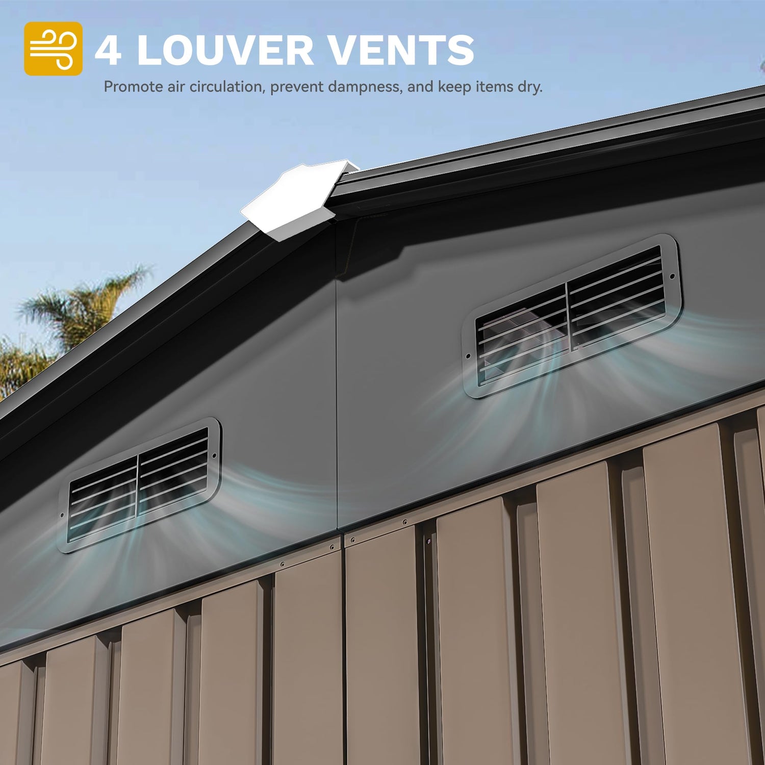 DWVO 10x8ft Metal Outdoor Storage Shed, Waterproof Tool Shed Heavy-Duty Storage Unit with Lockable Door and Vents, Ideal for Bicycles, Tools, Lawnmowers, Backyards, Patios, Lawns - Brown