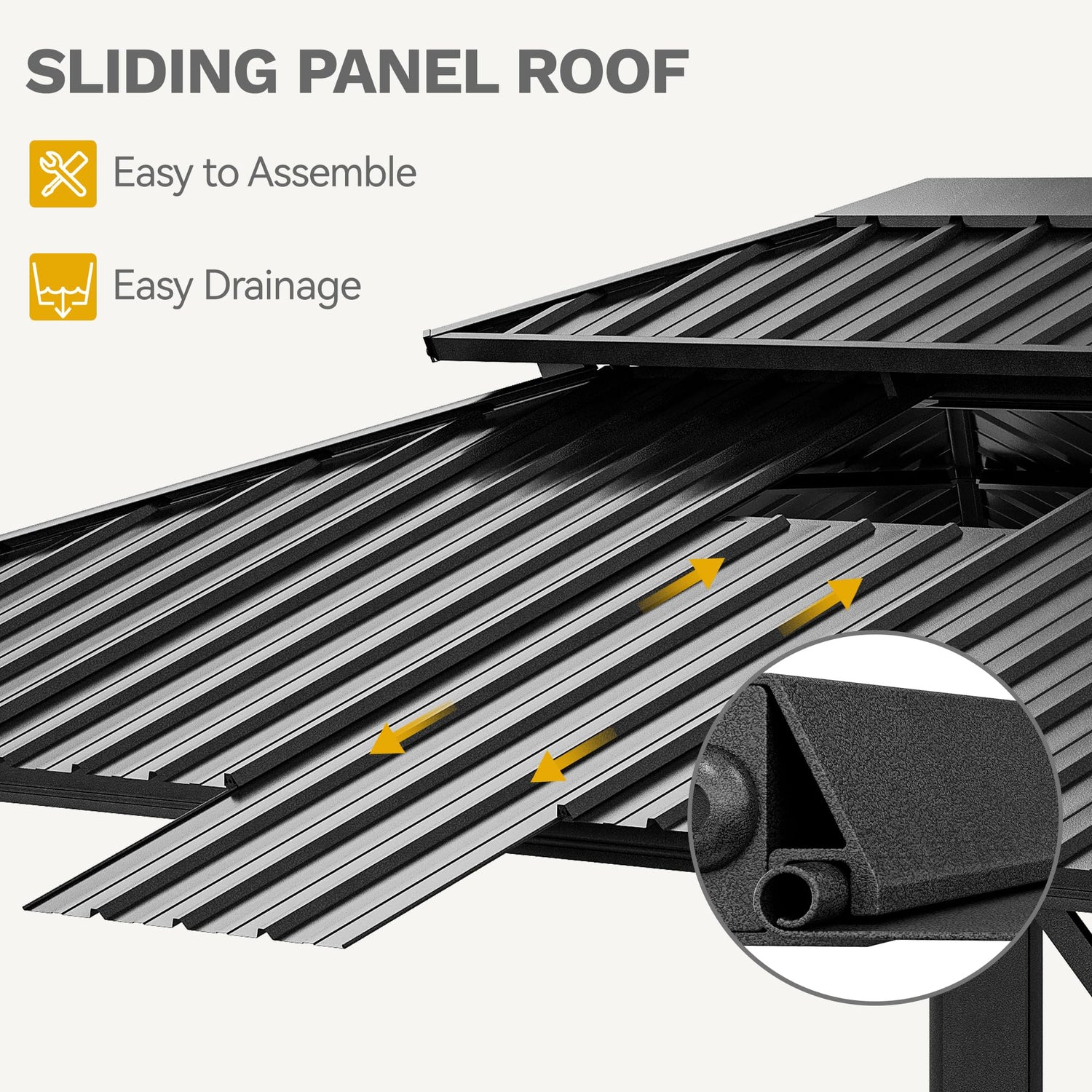 - DOUBLE LAYERED SIDEWALL- Hardtop metal gazebo features fully enclosed double-sided zipper, double trail system and double layer sidewall. Polyester cloth and mesh grant good ventilation and an open view; protect you from rain and UV rays while adding more privacy. Provide a safe and comfortable environment for your family and children