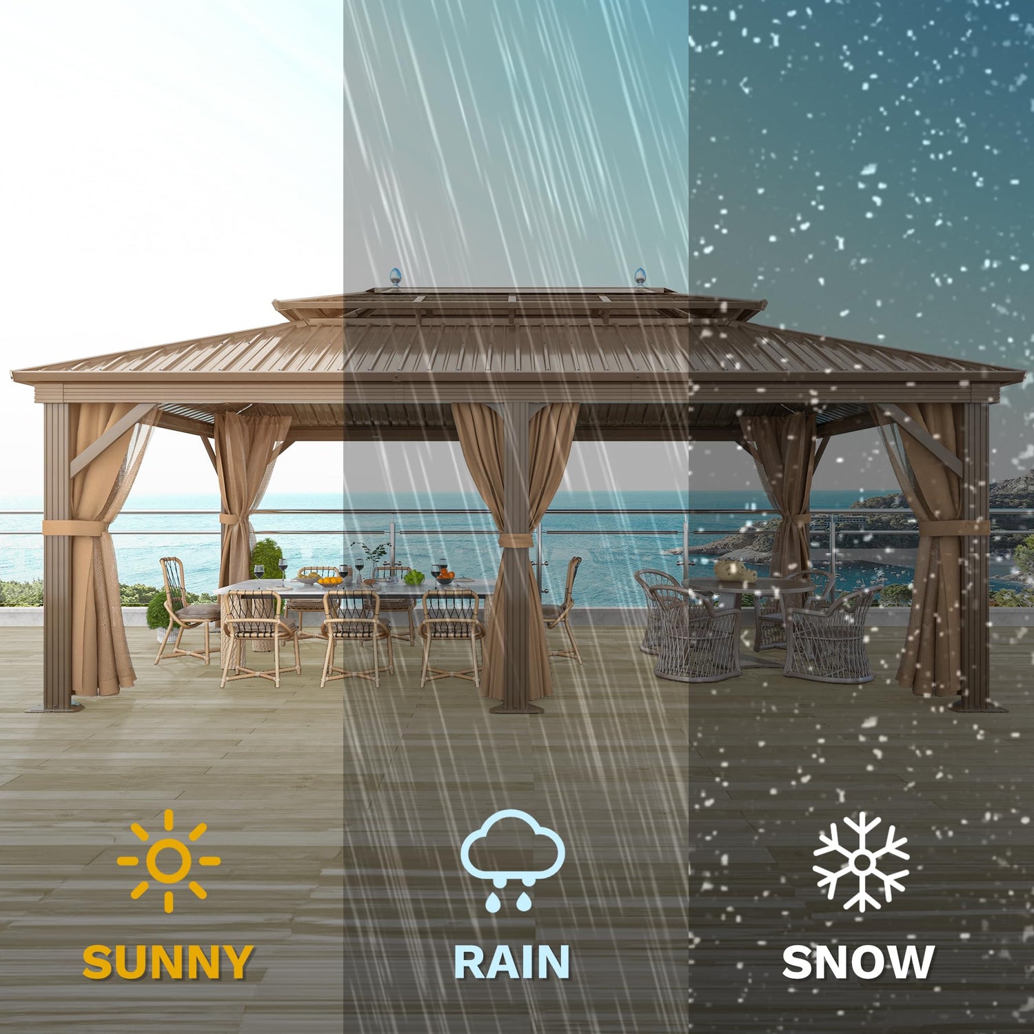 - SPACIOUS ROOM- Outdoor canopy gazebo looks great in backyards, terraces, lawns, courtyards and other outdoor spaces; It’s spacious enough to accommodate 10-16 people for parties and weddings; enjoy a relaxing time with your friends and family