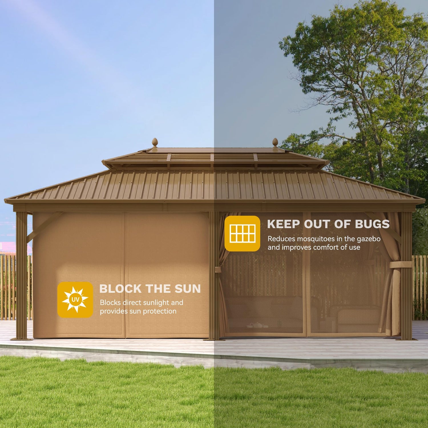 Details: 12x20 ft Hardtop Gazebo Outdoor Heavy Duty Aluminum Gazebo with Nettings and Curtains, Combined of Horizontal and Vertical Stripes Roof for Patio, Backyard, Deck, Lawns and Balcony, Bronze