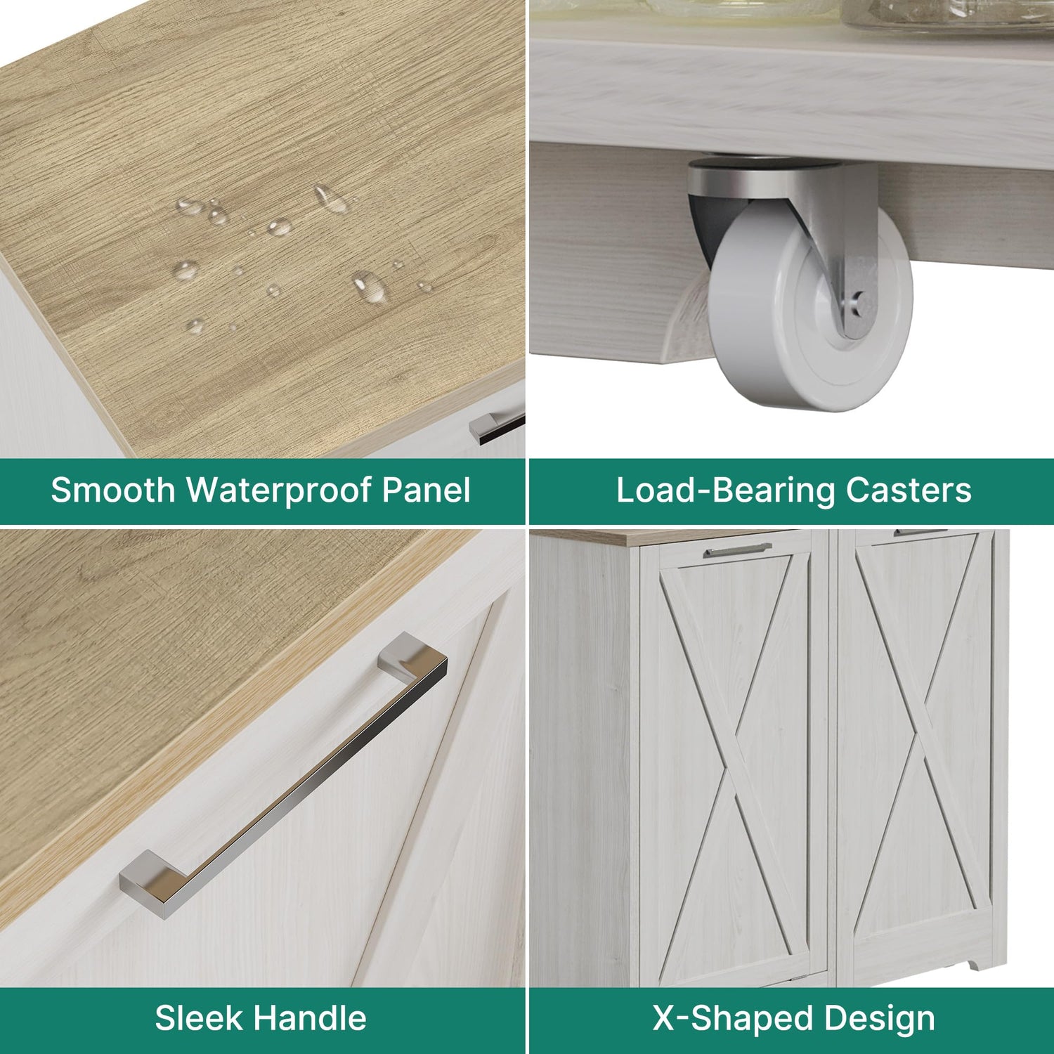- Integrated design: Conceal trash effortlessly with our sleek tilt-out trash cabinet. Keep pets out and odor in check and enjoy a tidy space. Power up your kitchen appliance like mixers, blenders, and or more with the outlets, ensuring their safer use
