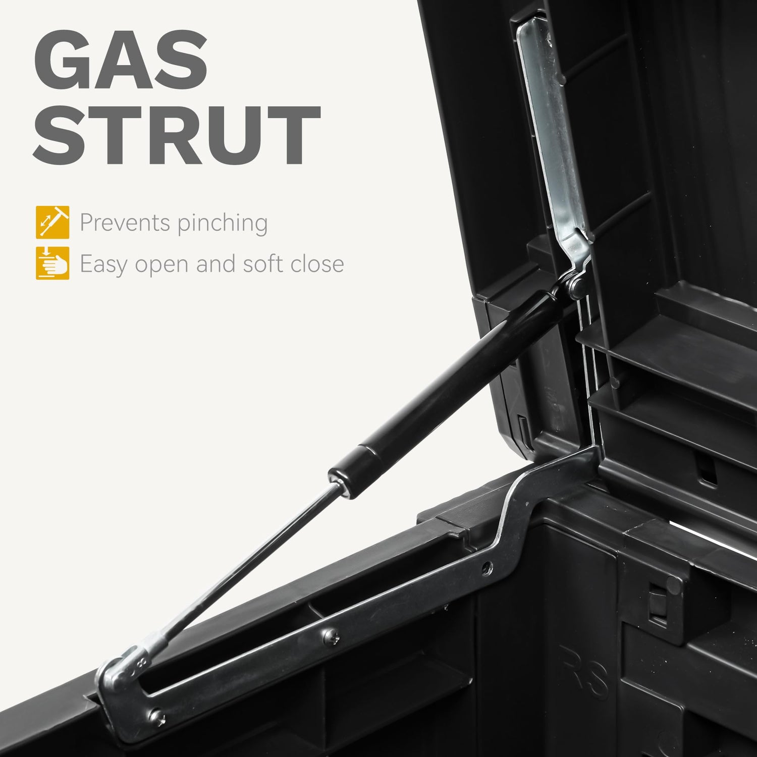 - Effortless Access & Secure Closure: Measuring 61"L x 28.4"W x 25.4"H, this XL outdoor storage box features dual hydraulic struts for smooth, controlled lid operation; The lockable lid keeps your belongings safe from the elements and unwanted access