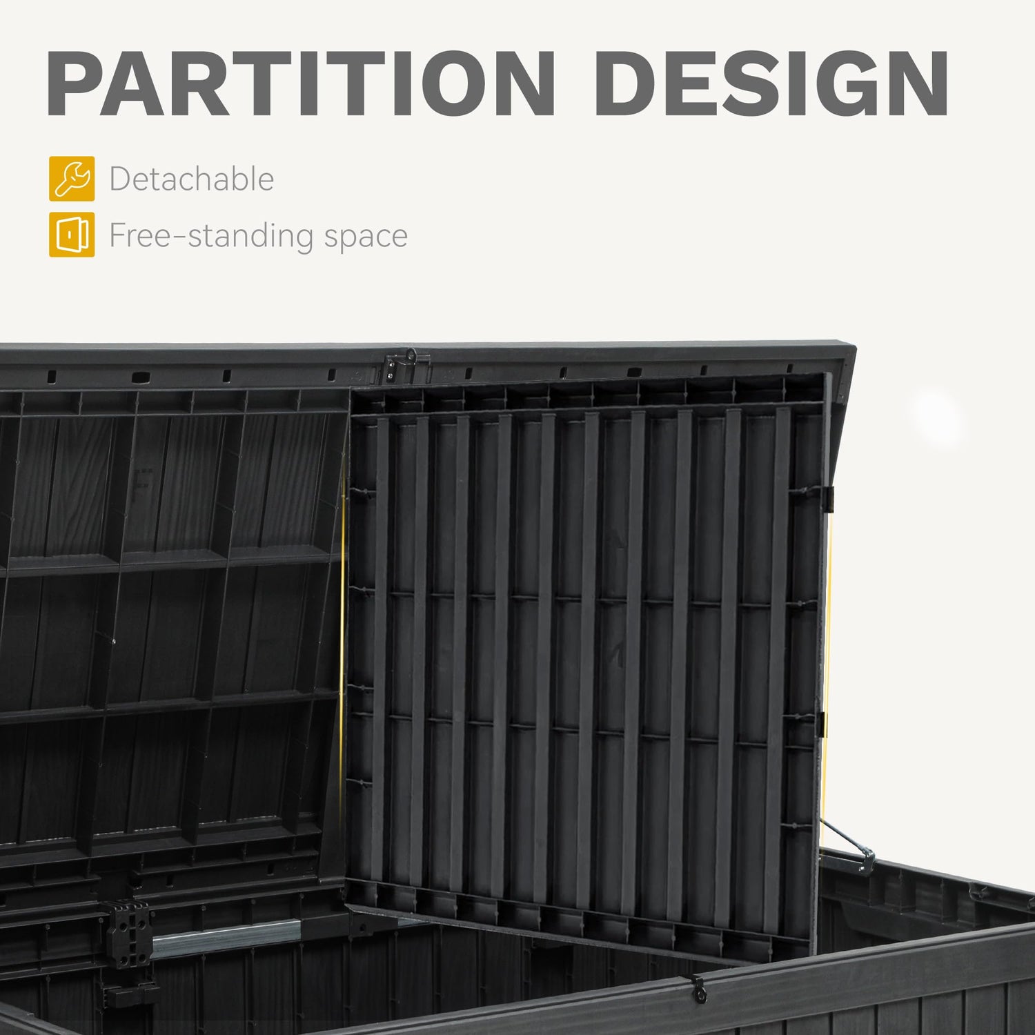 DWVO 150 Gallon XL Deck Box with Divider & Lockable Lid, Waterproof Resin Outdoor Storage for Patio, Garden, Poolside, Cushions, Supplies & Sports Gear, Black