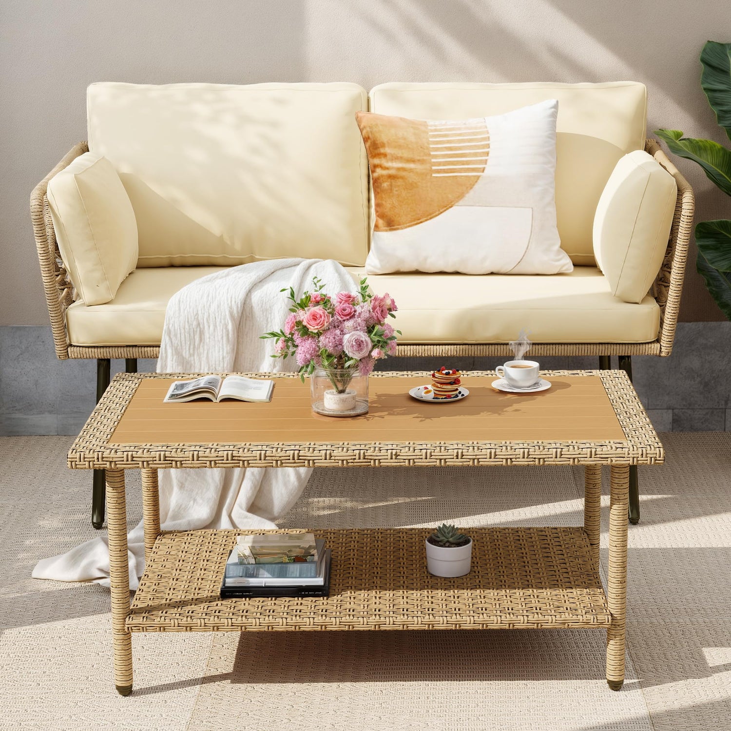 - Chic & Practical Side Table: This patio loveseat comes with a matching wicker side table topped with durable plastic wood, providing the ideal spot for drinks, snacks, or decor; Built to resist light rain, it ensures your leisure time goes smoothly