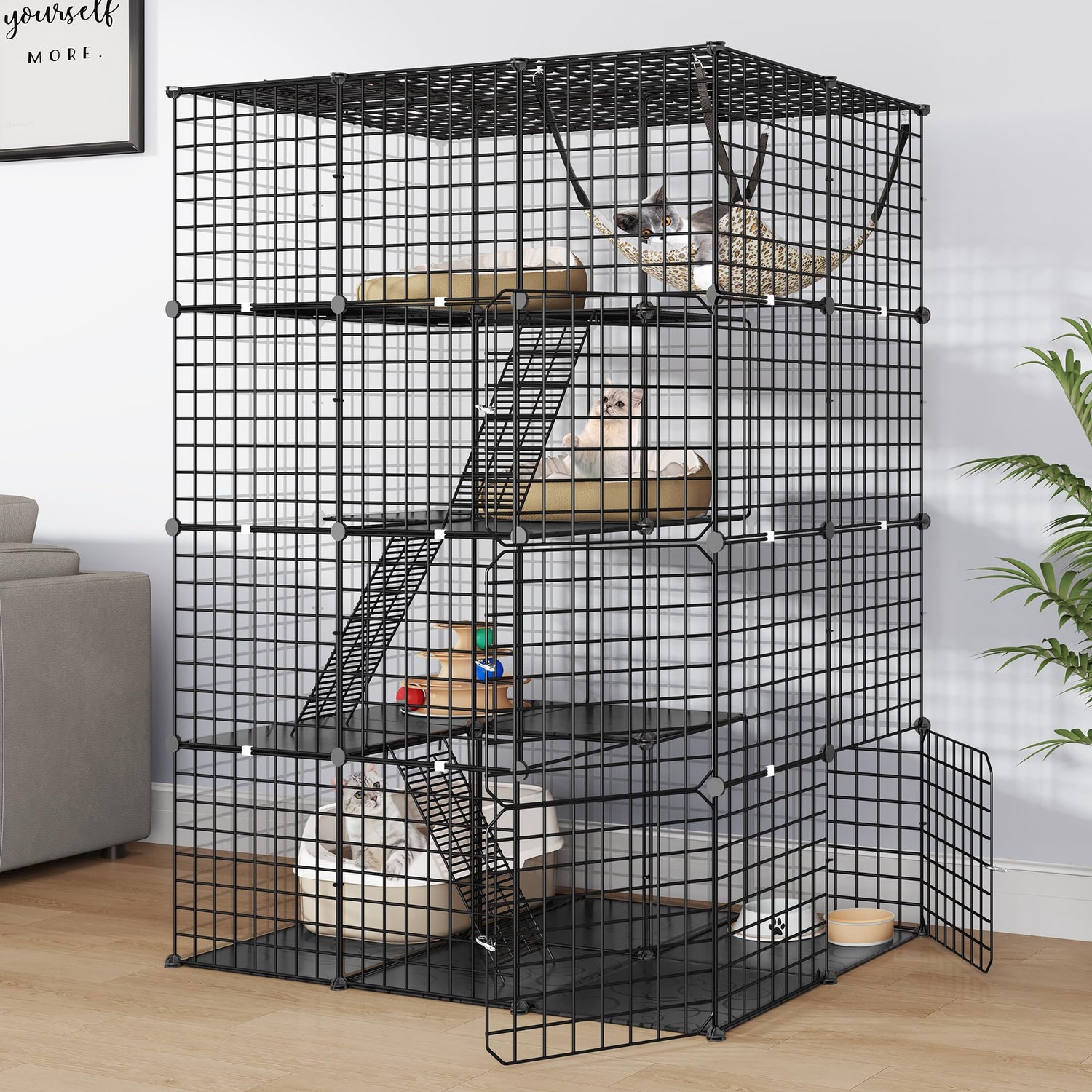 - Clean And Stable Floor Mat: Easily detachable black floor mats are included with this cat cage to create a pristine interior environment that's kept dry & clean. The versatile cat enclosure is also suitable for other small animals, such as guinea pigs, ferrets, rabbits, chinchillas etc.