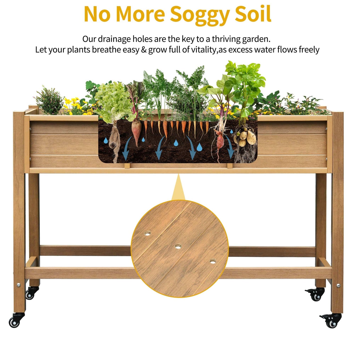 - Easy to Move: Equipped with a set of secure-locking wheels, allowing seamless relocation of the pot to capitalize on optimal patterns of sunlight and shade.