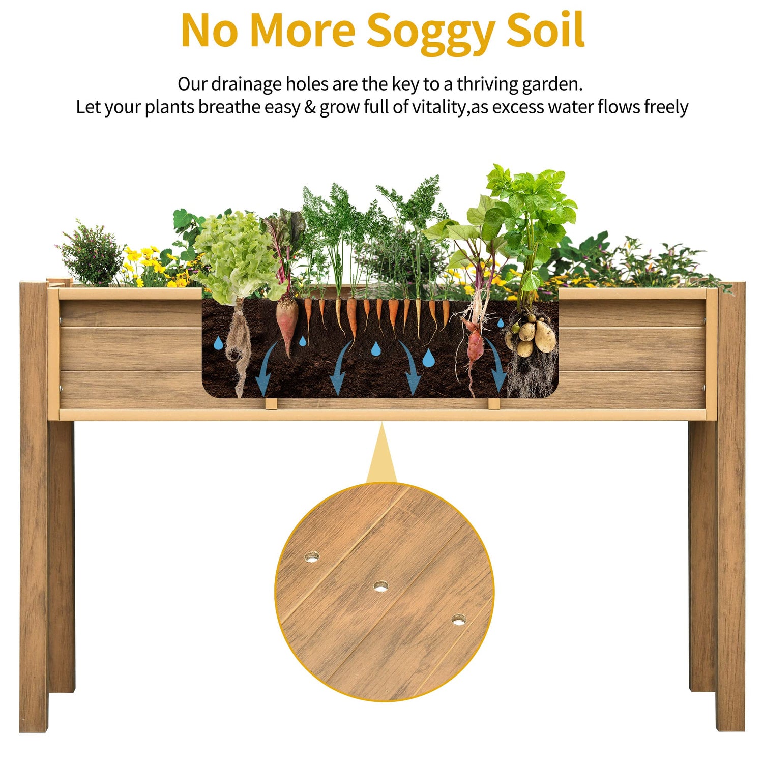 DWVO 48x18x30in Raised Garden Bed, Poly Wood Planter Box Stand,Weather Resistant Planter Box with Legs, Elevated Garden Bed for Backyard, Patio, Balcony, Brown