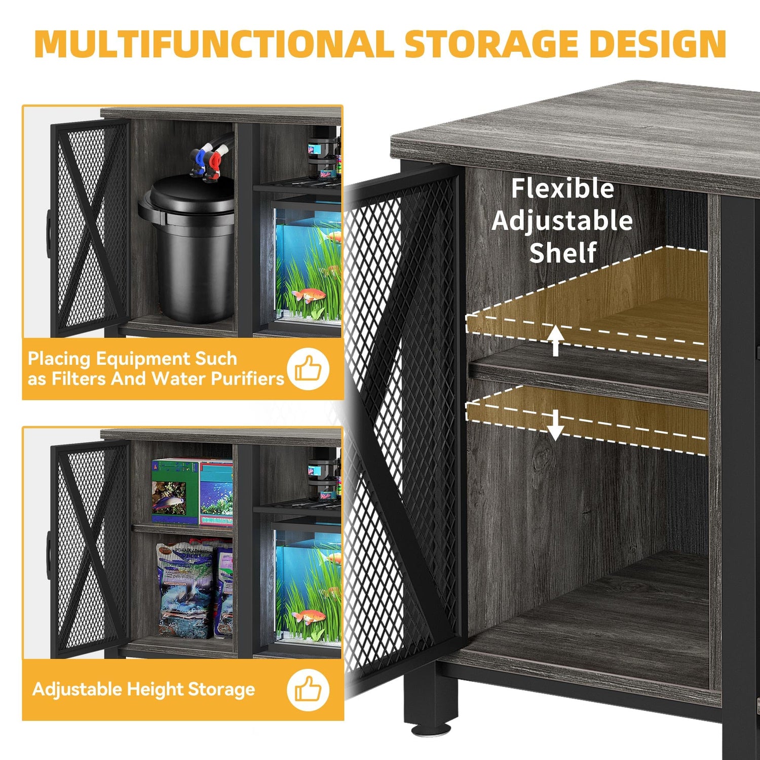 DWVO 55-75 Gallon Aquarium Stand with Power Outlets, Cabinet for Fish Tank Accessories Storage - Heavy Duty Metal Fish Tank Stand Suitable for Turtle Tank, Reptile Terrarium, 860LBS Capacity, Grey
