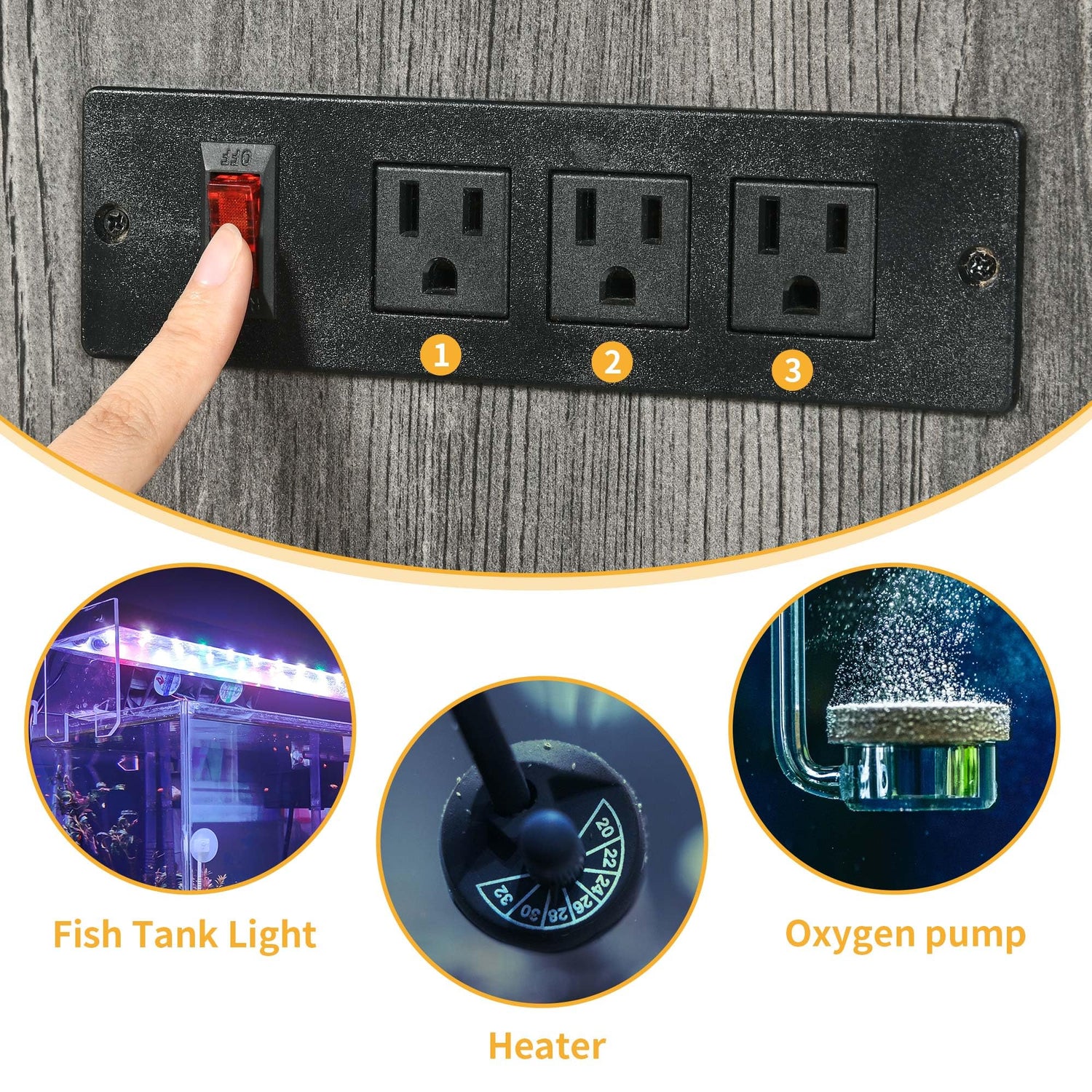 - Convenient and practical: The integrated power outlets can be easily installed, without the need for additional tools. Easy to connect electronic devices such as lights, heaters, and oxygen pumps, simplifying your fish tank management