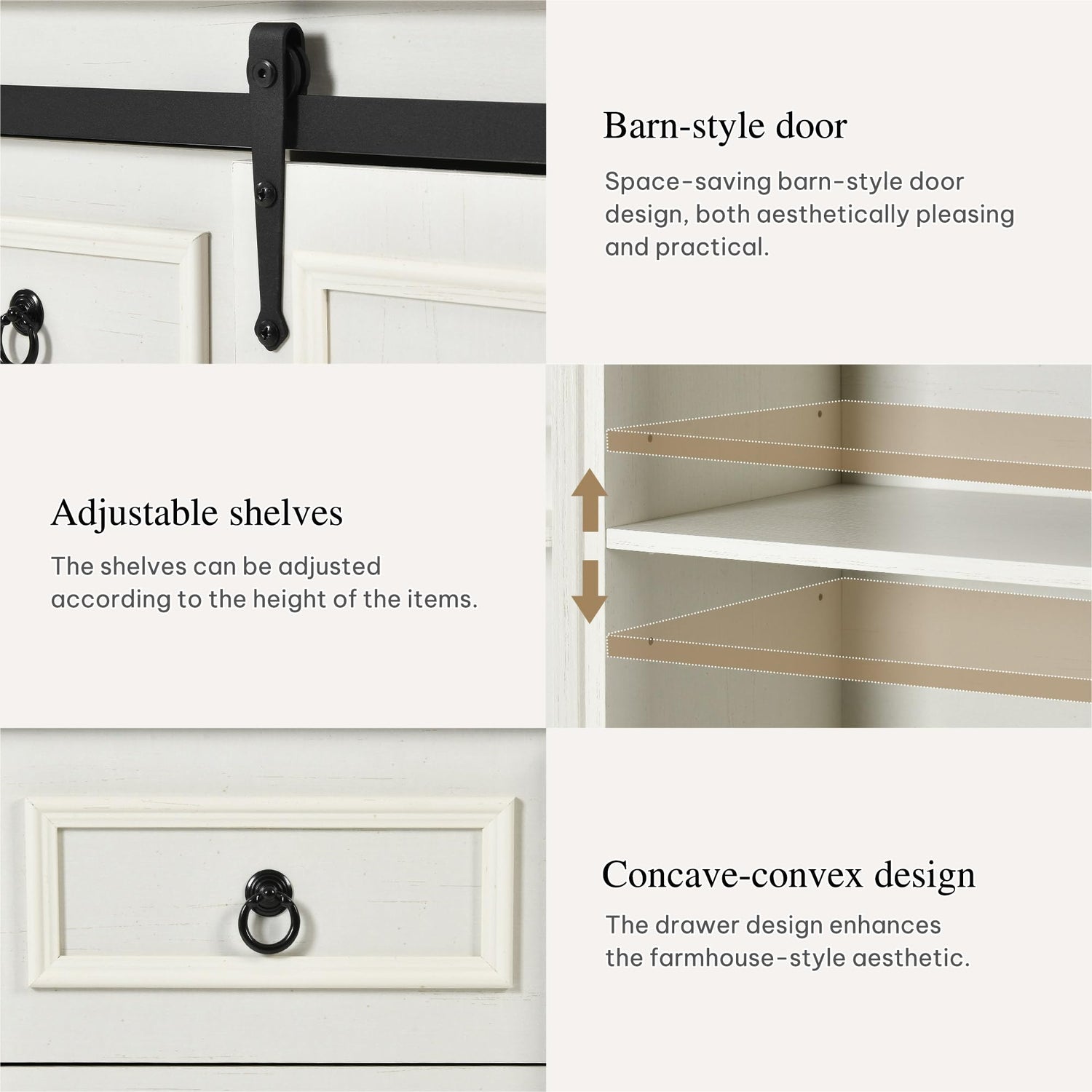 - Charming Farmhouse Style: Upgrade your kitchen with this farmhouse kitchen pantry featuring stylish barn doors & classic black metal elements. The chic metal handles add a unique touch, giving your kitchen that chic and cozy vibe you've been looking for