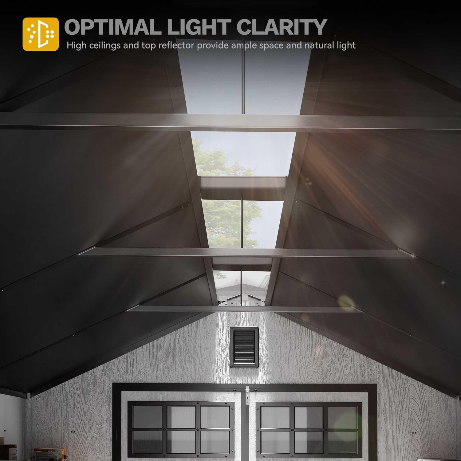 - Tough Enough for the Elements: Feel confident knowing your large storage shed is built to last. With a galvanized steel frame and weatherproof PP panels, it handles rain, wind, and sun. The built-in floor keeps your items elevated, safe from dirt and moisture