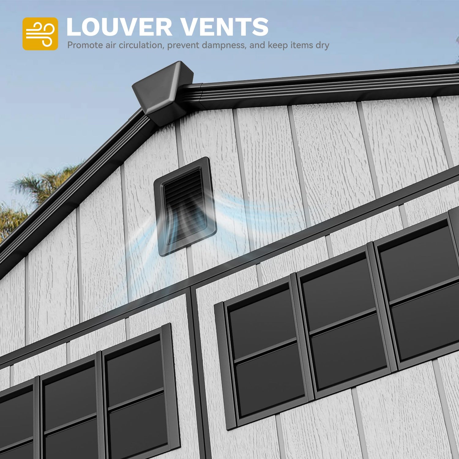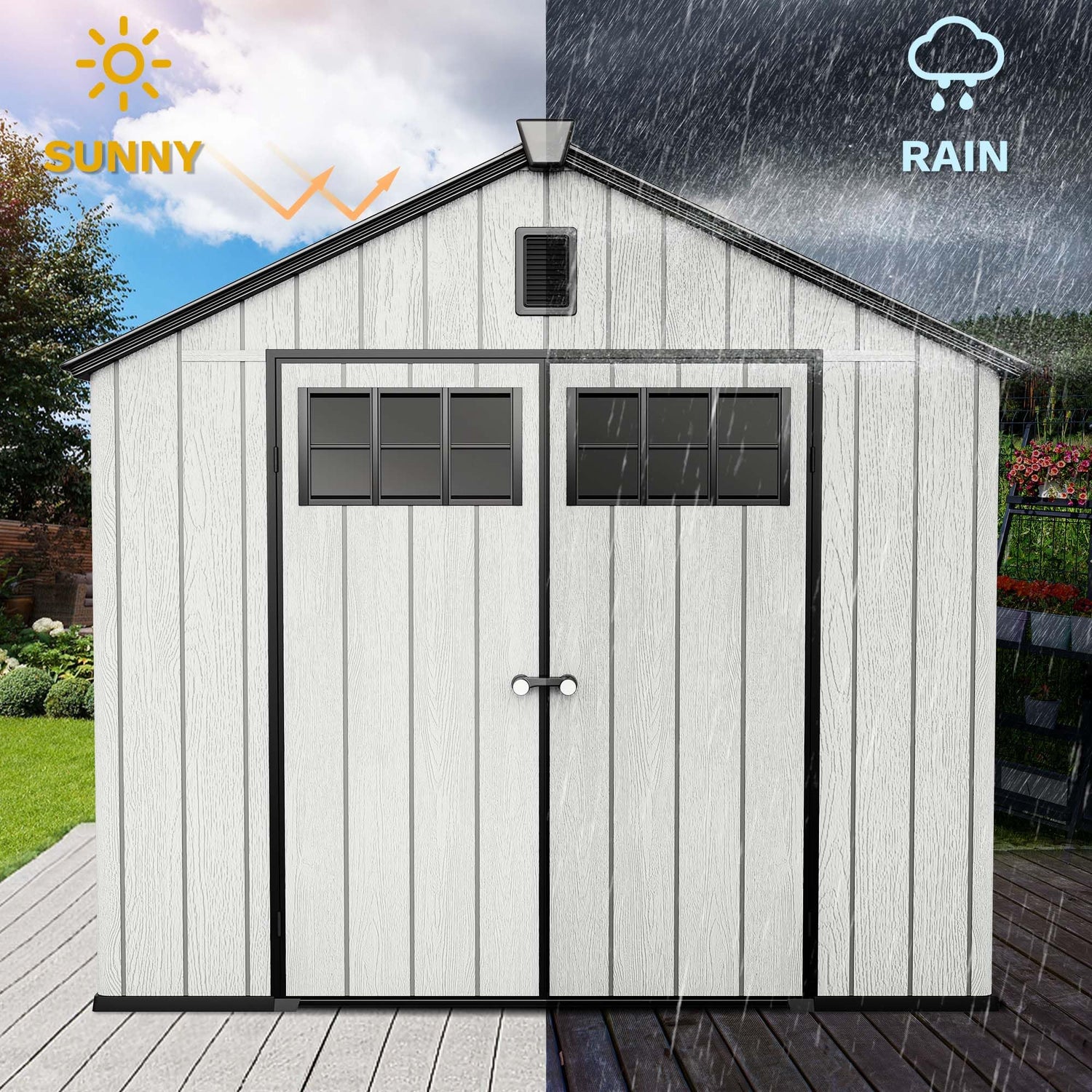 - Fresh and Dry All Year Long: With front and rear vents, your plastic garden shed stays dry and breathable. Say goodbye to musty smells and dampness, your tools and seasonal items remain in top shape all year long. Grab what you need in good condition