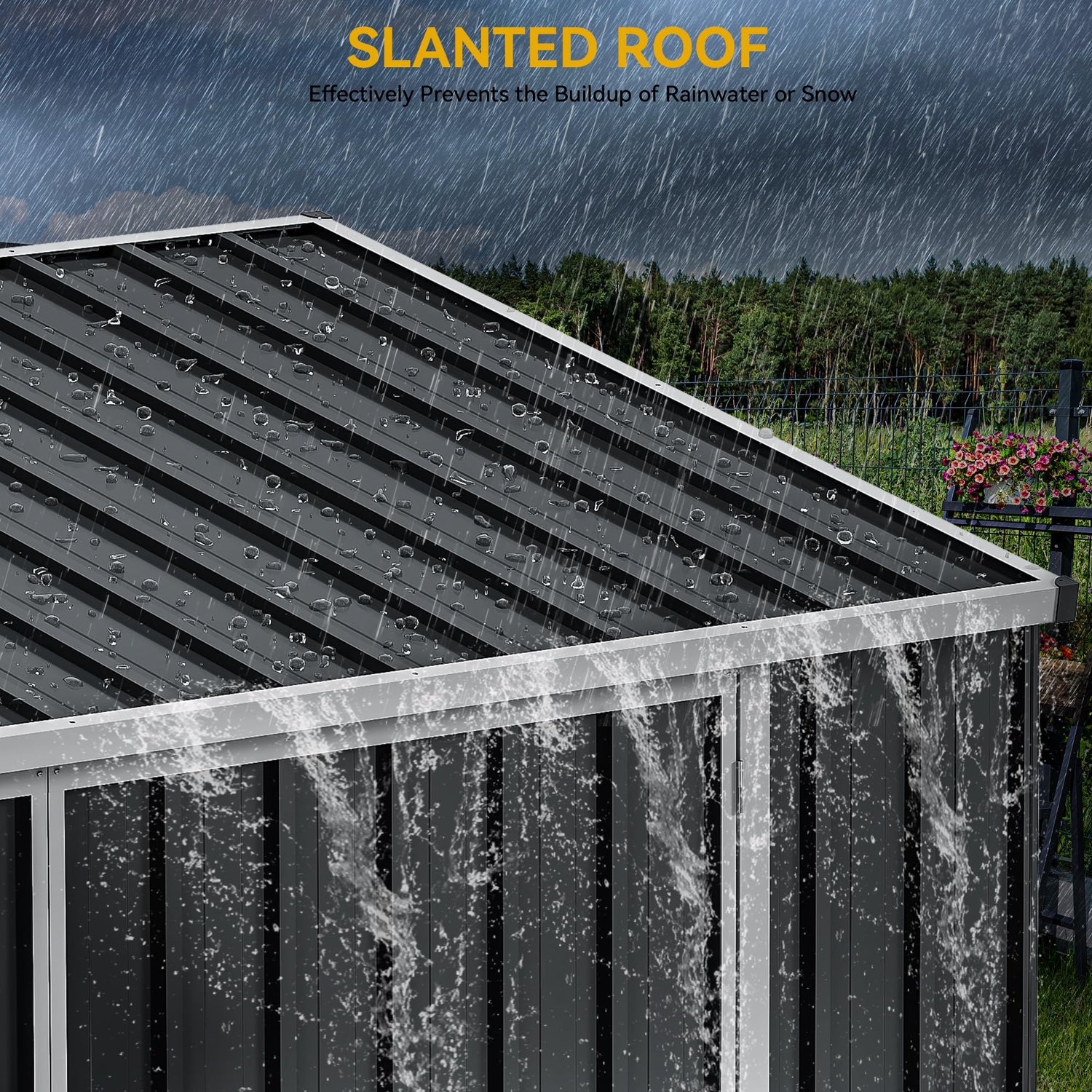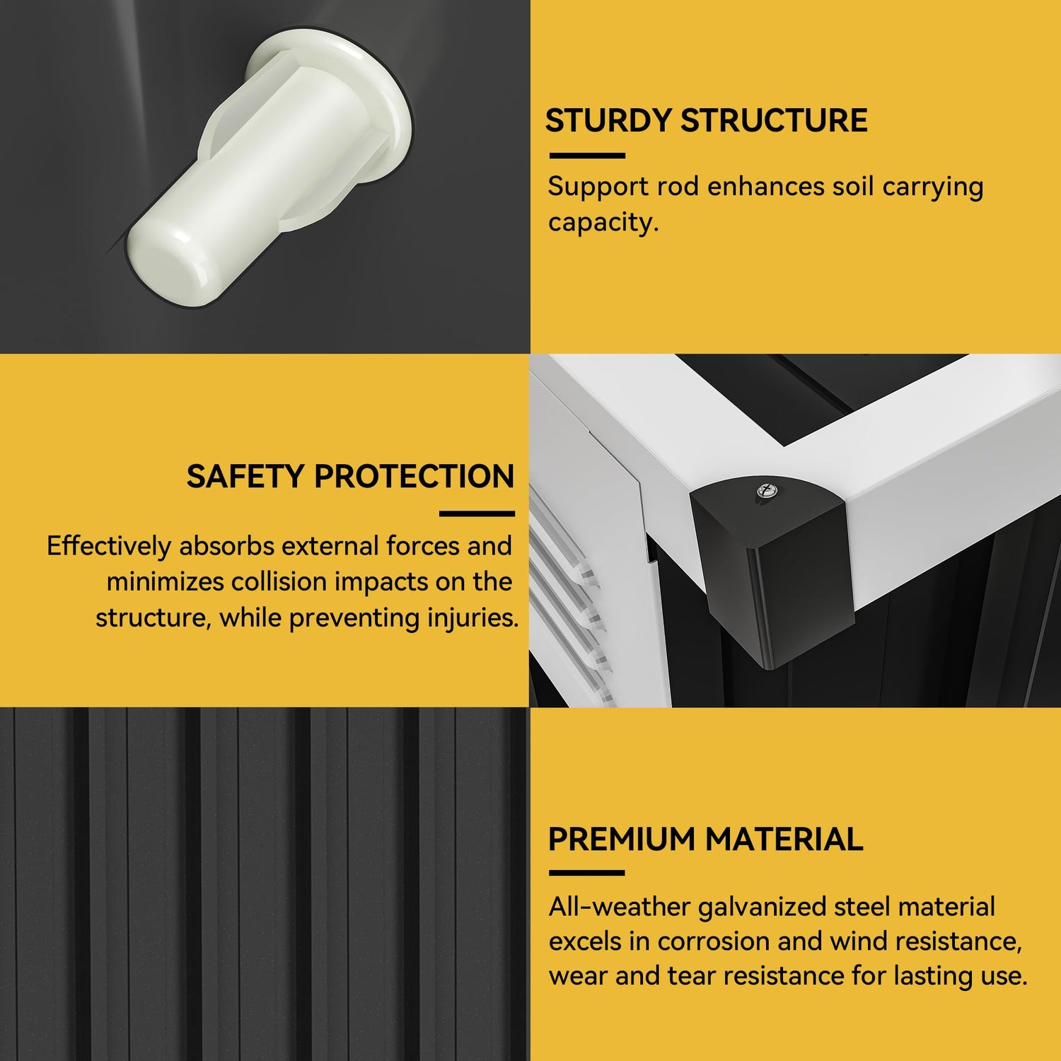 - Enhanced Materials: Made of galvanized steel, the outdoor storage unit resists corrosion and wind damage for lasting stability; Anti-collision rubber pads at each corner boost safety by minimizing impact in collisions