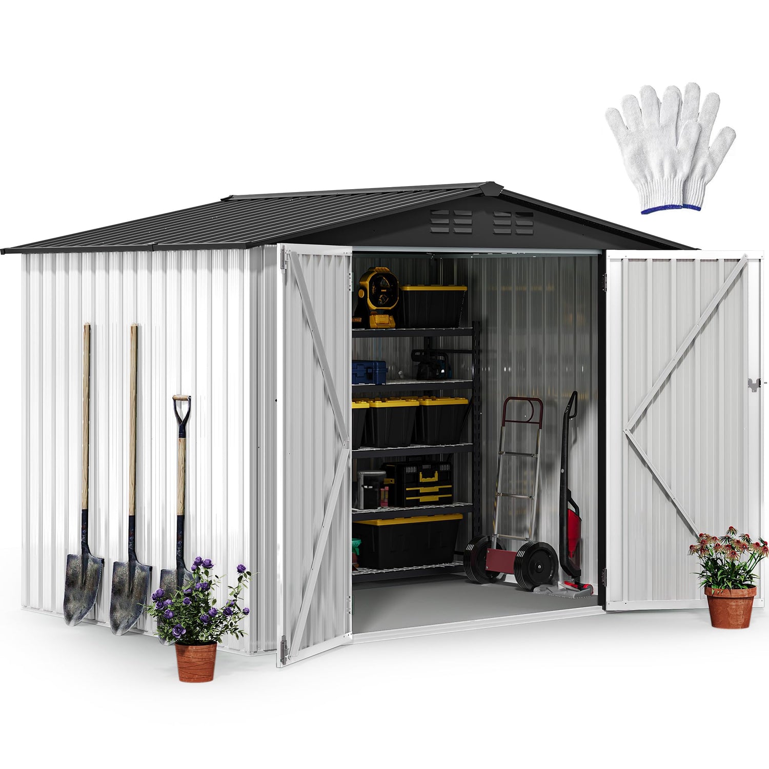 DWVO 8x6ft Metal Outdoor Storage Shed, Waterproof Tool Shed Heavy-Duty Storage Unit with Lockable Door and Vents, Ideal for Bicycles, Tools, Lawnmowers, Backyards, Patios, Lawns - White