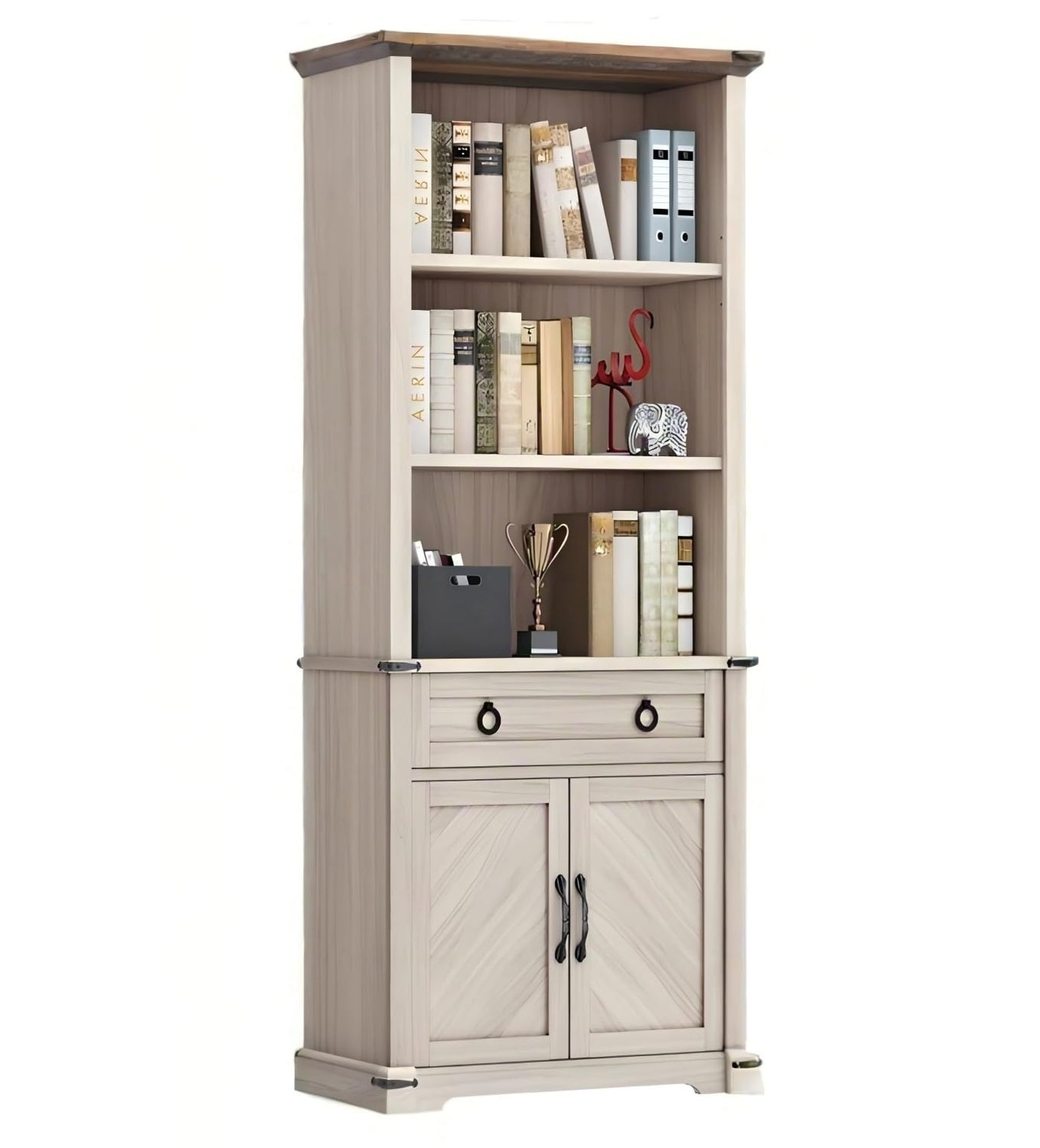 - Build to last: Made of thick and durable boards, our 5-tier bookshelf with doors offers good durability. Its corner iron can withstand daily wear and tear, while the anti-tip kits secures the bookshelf with storage to the wall, reducing the risk of tip-over accidents