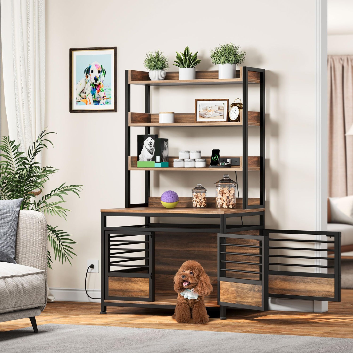 - Dog Crate with Shelves: Our dog crate features 4 spacious open shelves, ideal for storing pet supplies. With a versatile design, it doubles as a chic bookcase, media console, or accent table, maximizing space and providing comfort for your furry companion