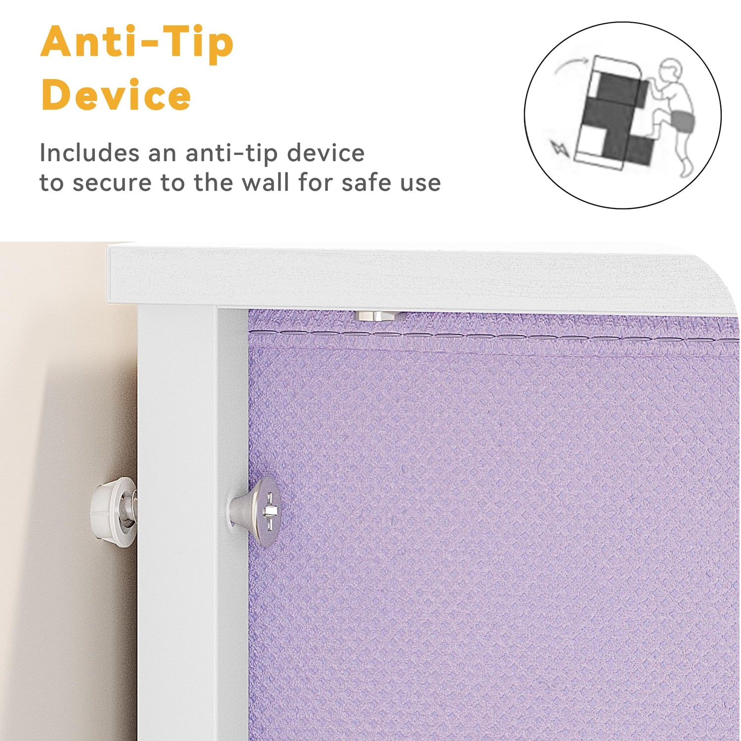 - SAFETY FIRST- Minimal assembly required with easy-to-read instructions, safety kit, and accessories included; Wall anchoring is recommended to prevent tipping; Overall size: 17.7''L x 11.8''W x 37.4''H; Drawer dimensions: 15.7" L x 11" W x 8.3" H