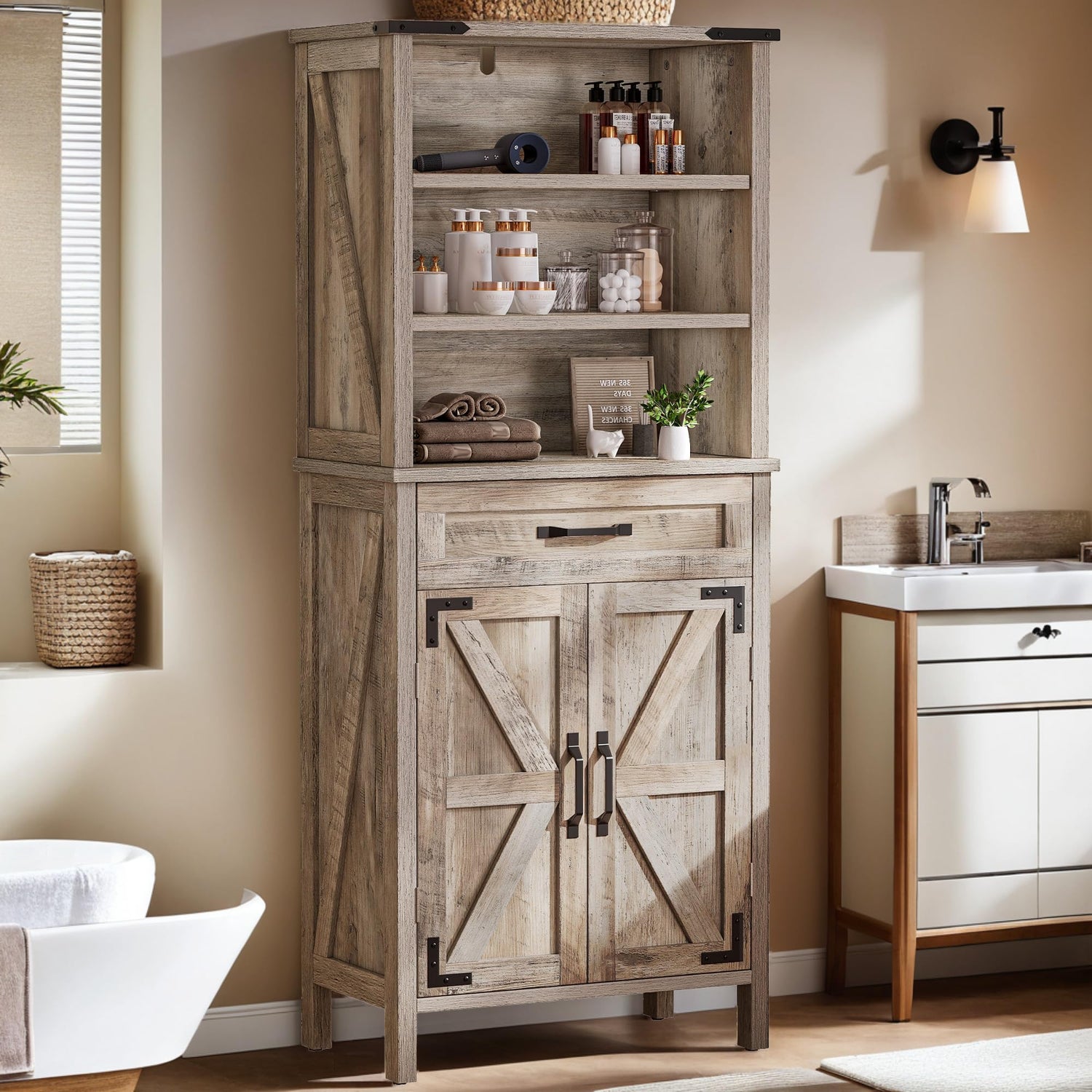 - Classic & Stylish: The tall bathroom cabinet fits in with any style of home decor, making efficient use of vertical space and reducing household clutter, adding a touch of farmhouse charm to any setting