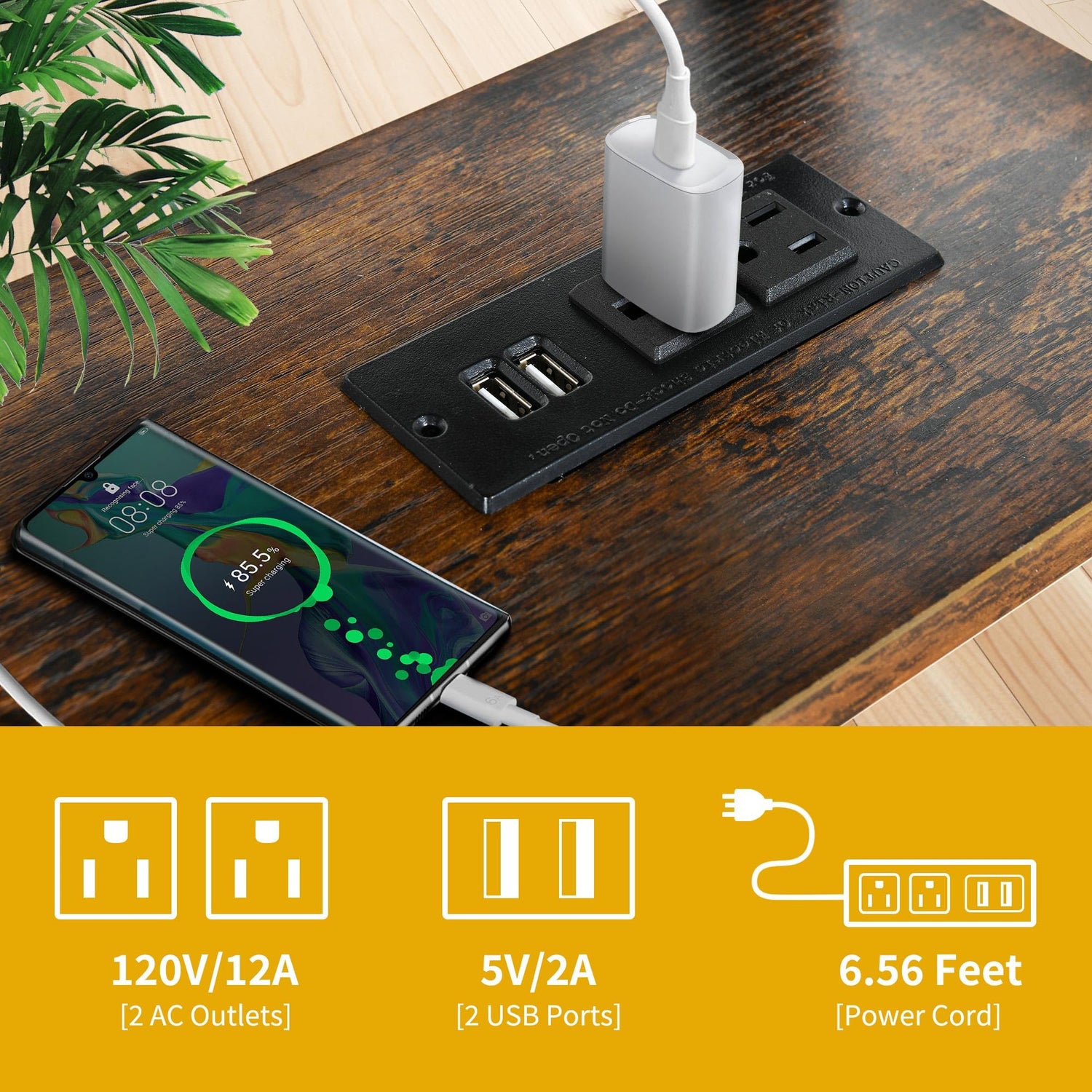 - Always Stay Connected: Our desk includes two USB ports, two power outlets, and a 6.56ft power cord, allowing you to charge devices and stay productive without being tied down. Enjoy the flexibility to work anytime