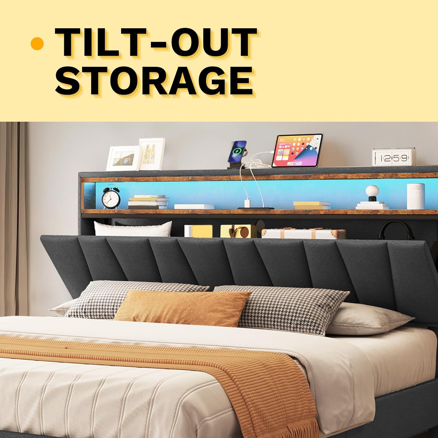 - Organized Bedside Essentials: Keep your nighttime necessities close at hand with our LED bed frame king; The cleverly designed headboard features built-in shelves, providing a nice spot for books, alarm clocks, or decorative items, ensuring everything you need is within reach