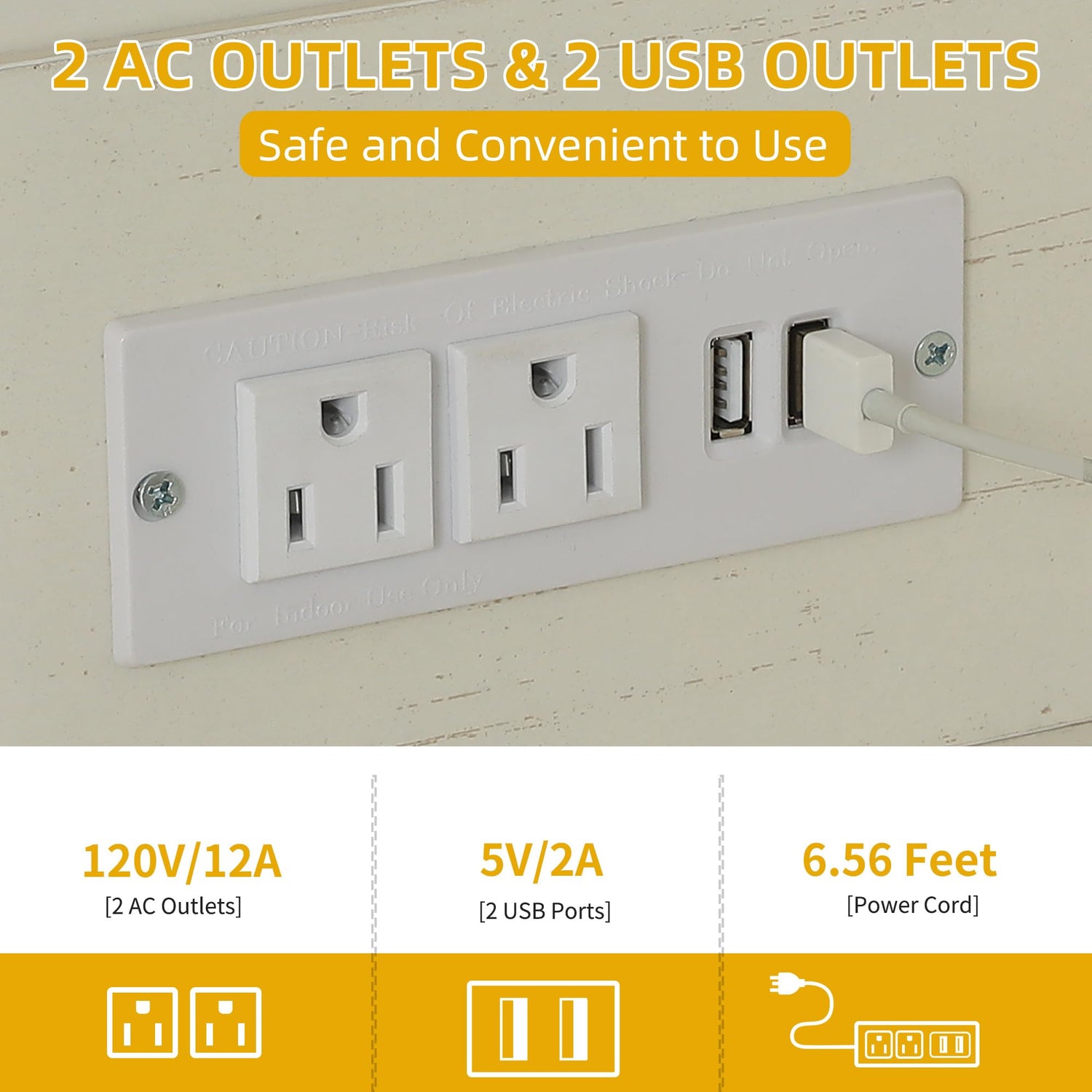 - 2 AC Outlets & 2 USB Outlets: Equipped with 2 AC outlets, DWVO kitchen hutch cabinet provides handy connections for charging or powering daily appliances like microwaves, coffee makers, and toasters. Additionally, 2 USB outlets are available for charging your phone