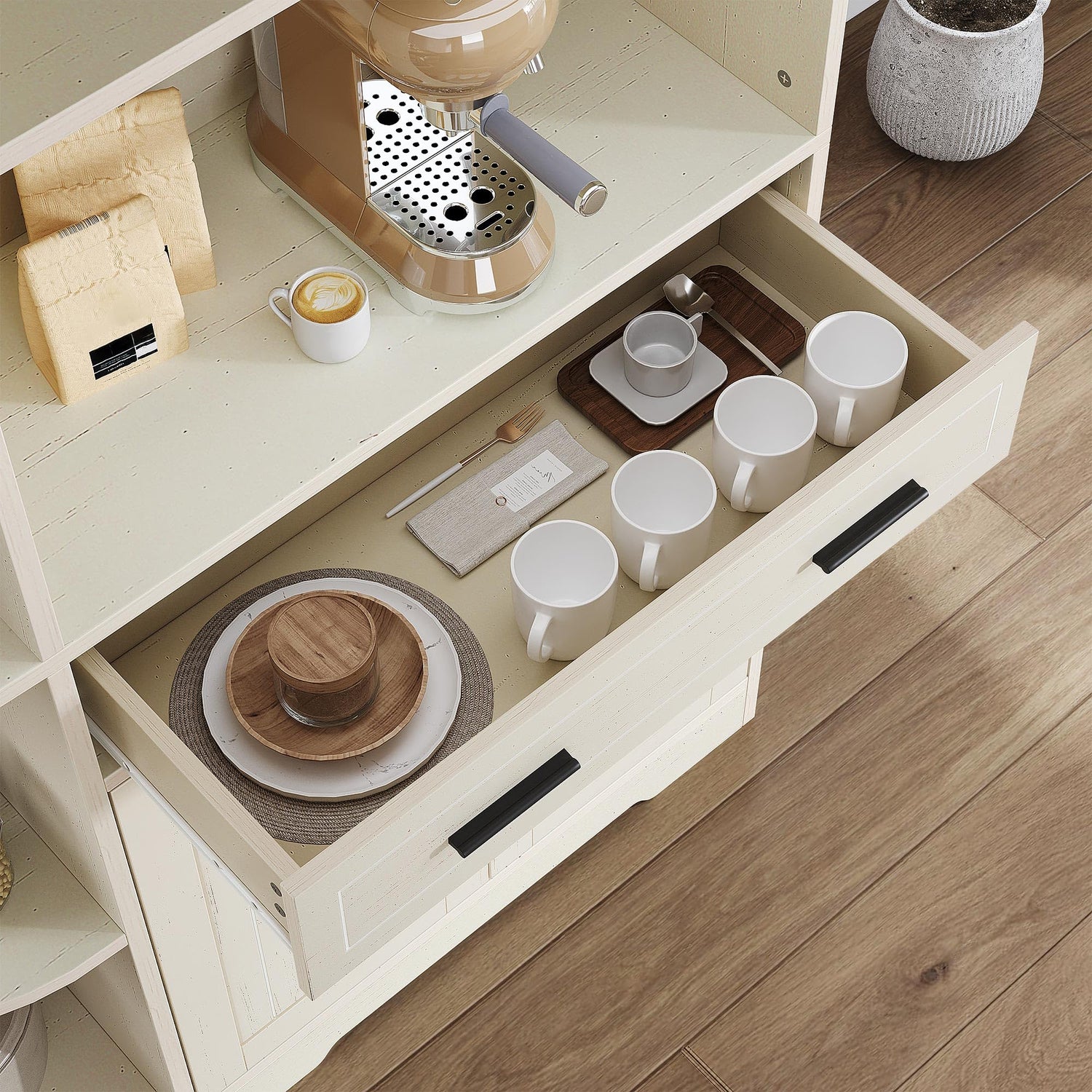 - Multifunctional & Farmhouse: Blending modern aesthetics with classic vintage appeal, this farmhouse pantry organizers and storage cabinet fits various decors in kitchen, dining room, living room or hallway. Its stylish and elegant style also doubles as a hutch, buffet, microwave stand, bakers racks, coffee bar, console table or storage cabinet