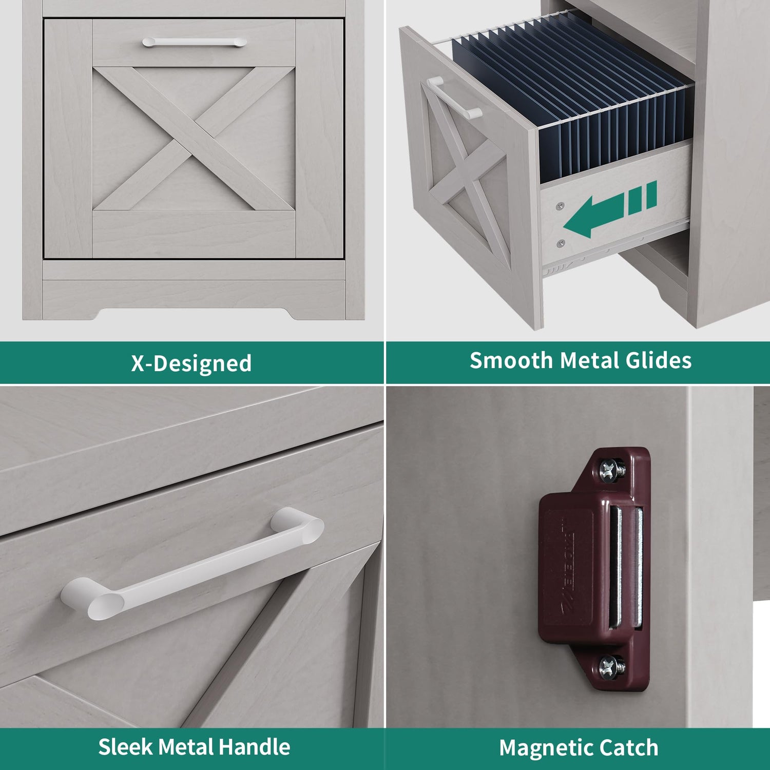 DWVO L Shaped Desk with File Drawer, 60" Corner Computer Desk with Power Outlets, Home Office Desk with Monitor Stand & Storage Shelves & File Cabinet, Grey Wash