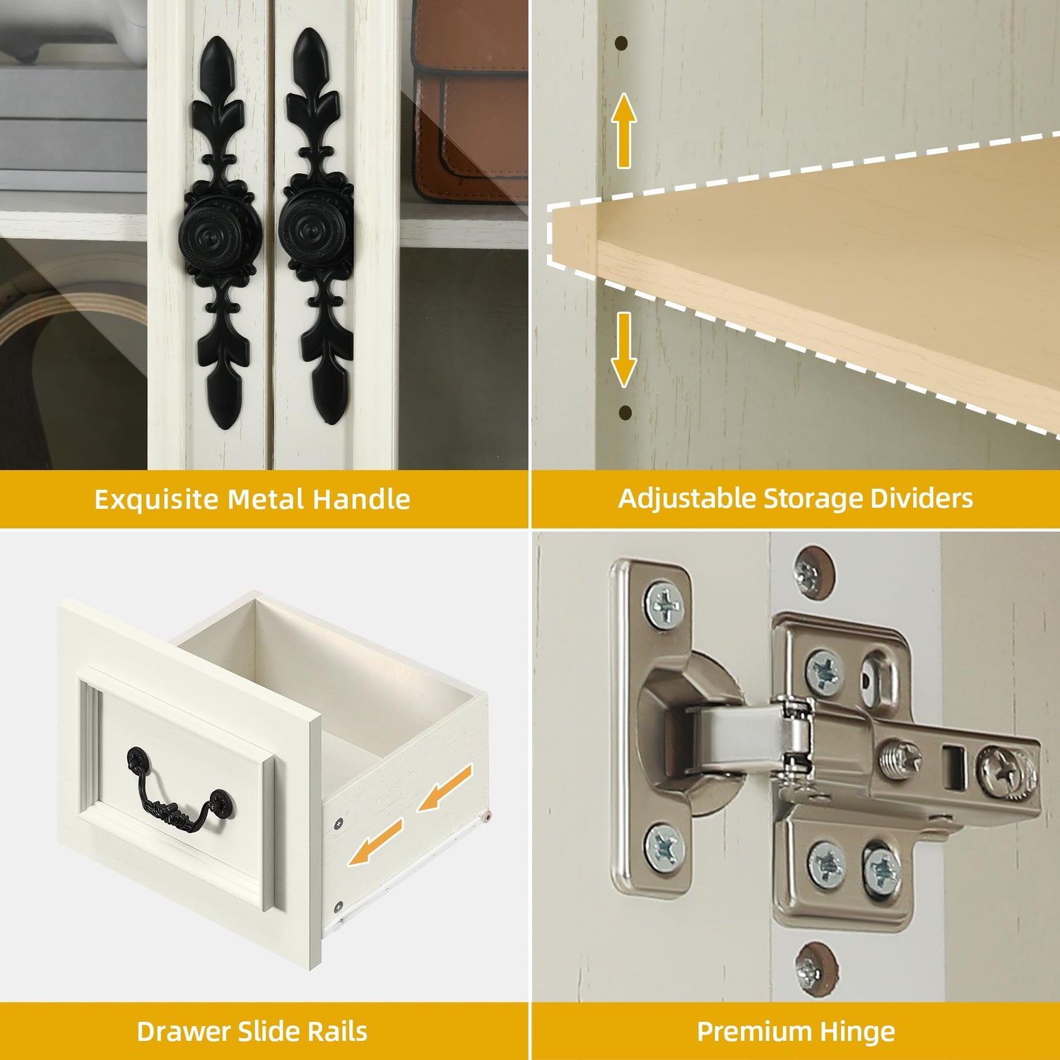 - Sturdy & Timeless Construction: Made from solid particle board with a reinforced base and non-tipping kits, this large kitchen cabinet is built for durability. The vintage handles enhance its charm, adding a rustic vibe to your kitchen, living room, or dining area