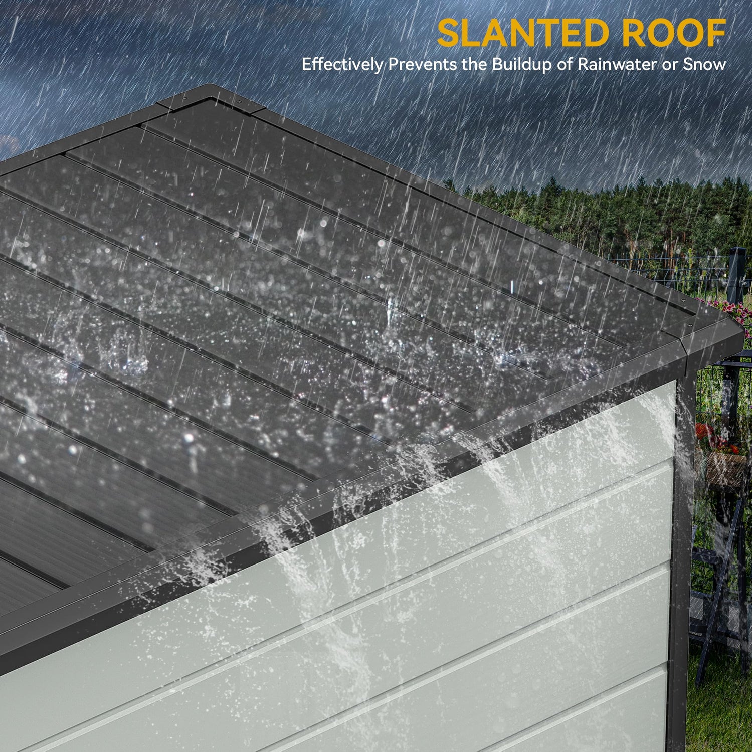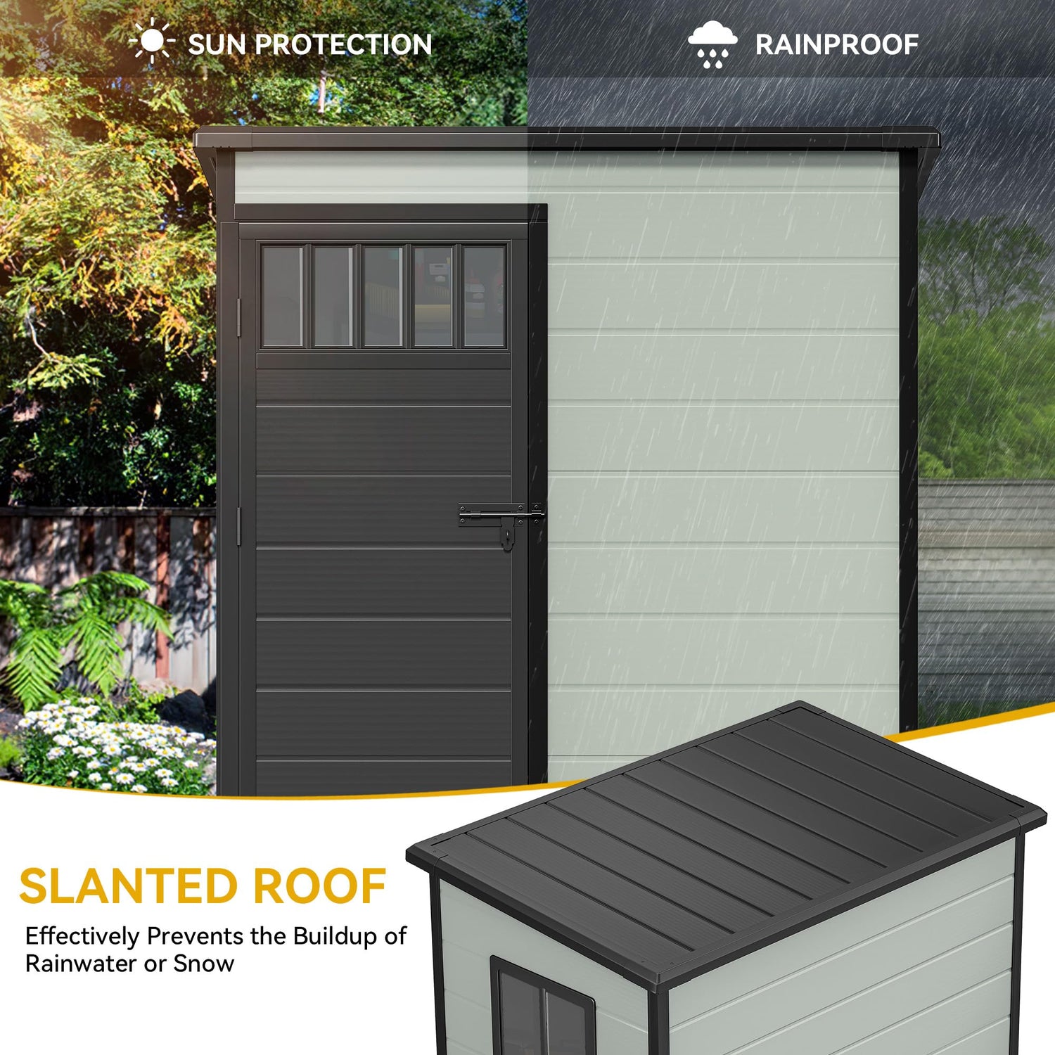 - Durable & All-Weather: Made from approximately 0.47 inches of Extruded Polystyrene (XPS) and 2-layer plastic panels with a raised, securely anchored floor, this resin shed is built to withstand rain, sun, wind, and snow. It is fully UV-protected and waterproof