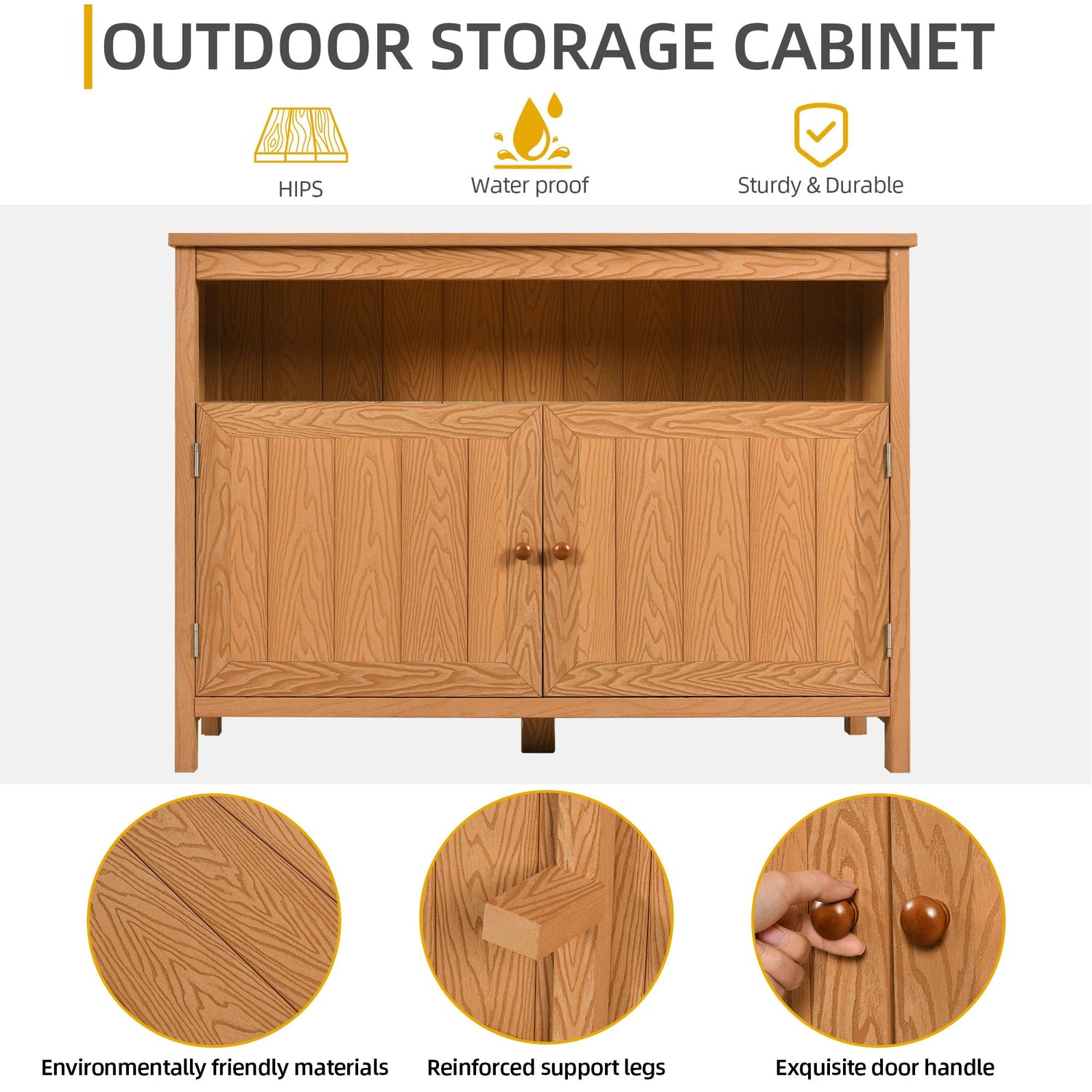 DWVO Poly Lumber Outdoor Sideboard, Patio Bar Table with Storage and Shelves, Weather Resistant Storage Cabinet for Outdoor, Pool and Garden - Brown
